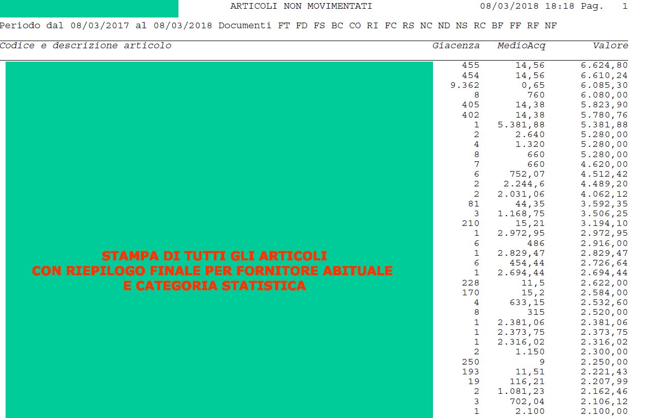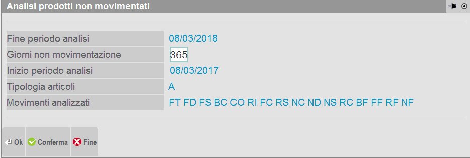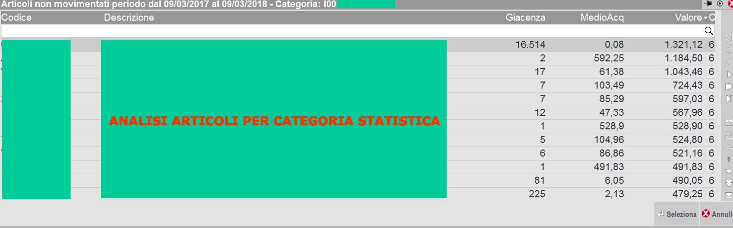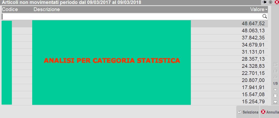 permette di analizzare il magazzino evidenziando i prodotti non movimentati in