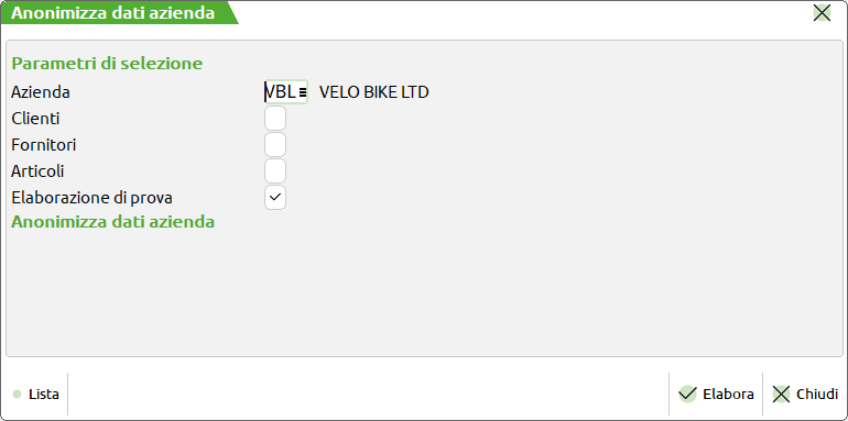 Applicazione che modifica le informazioni contenute negli archivi dell'azienda, per consentirne il trasferimento a terzi di dati non proprietari, per qualsiasi finalità: dimostrazioni, esecuzione di test, assistenza ed operazioni di servizio generali.