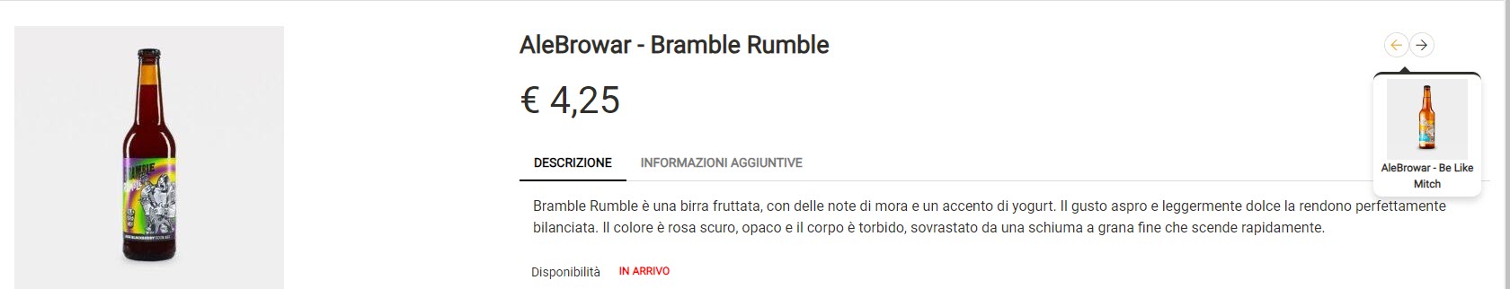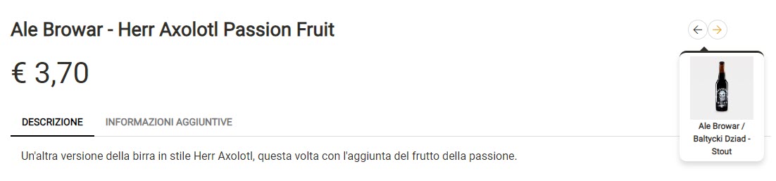 Con l'estensione della navigazione tra schede prodotto è possibile visualizzare un'anteprima del nome e dell'immagine del prodotto precedente/successivo al passaggio del mouse. Con la navigazione tra schede prodotto è possibile anche selezionare un ordinamento della navigazione come articoli della stessa categoria