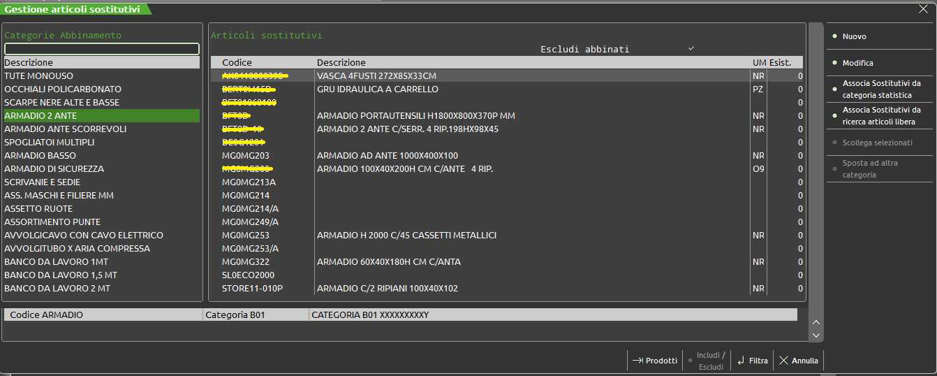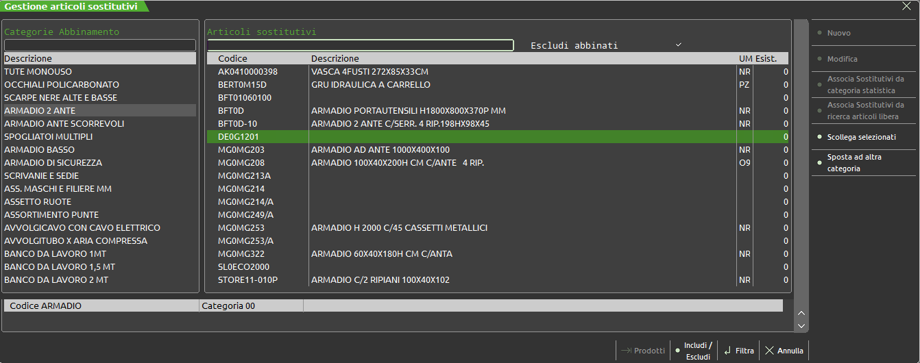 attrezzature, permette di velocizzare la ricerca dei prodotti abbinati per