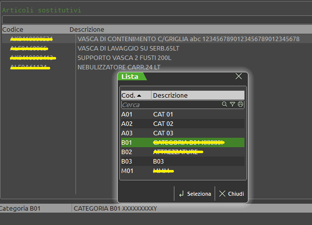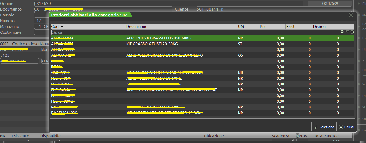 macro categorie, partendo dal prodotto inserito in riga documento il programma