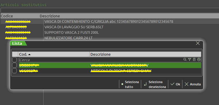 recupera tutti i prodotti abbinati e li propone in una lista di selezione a video.