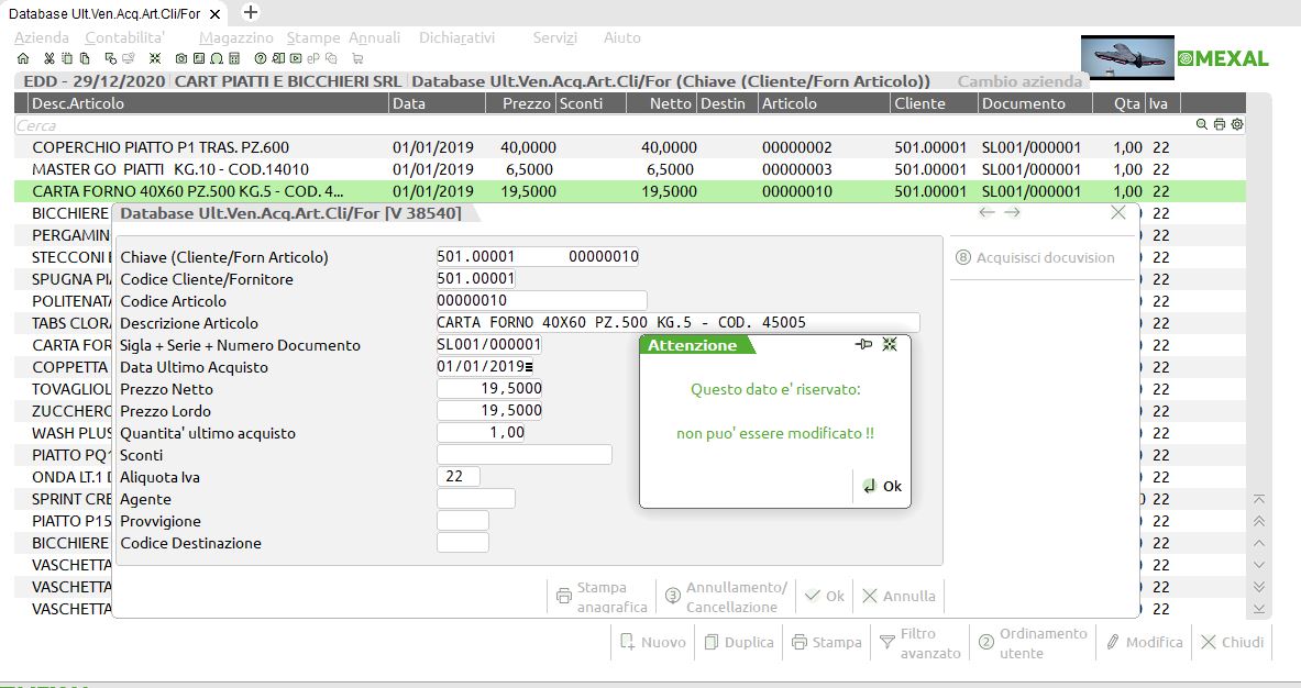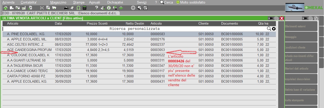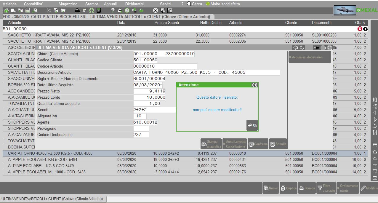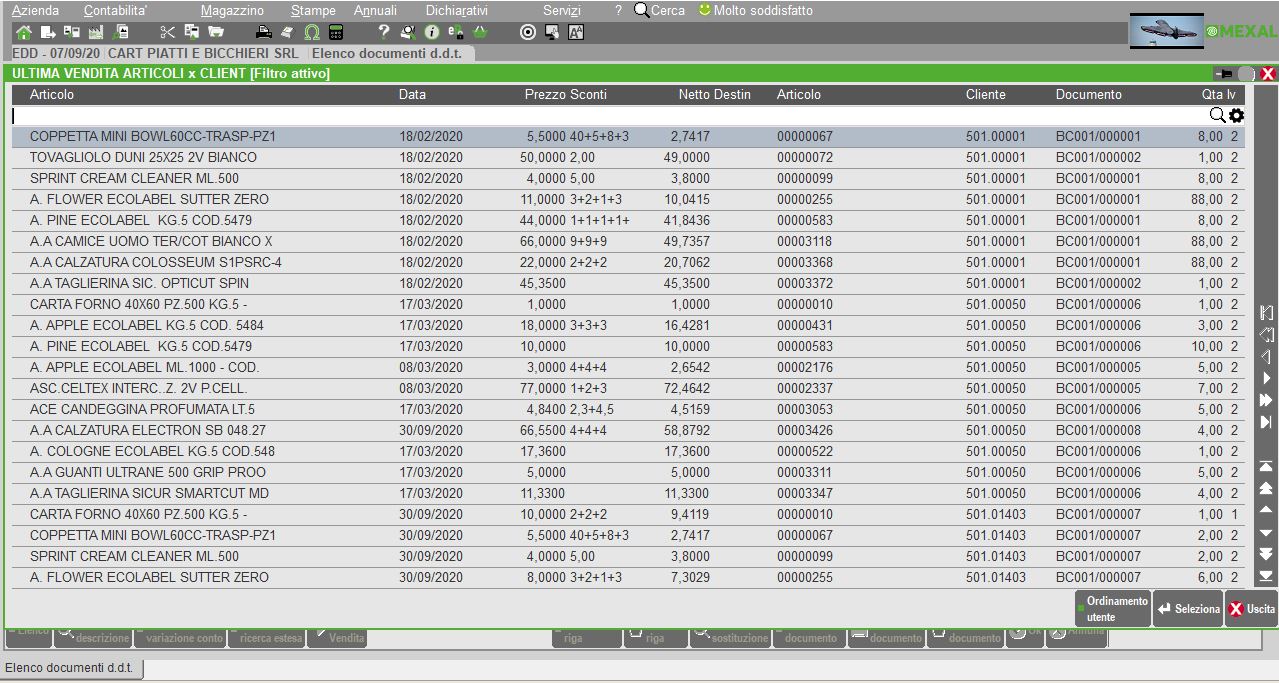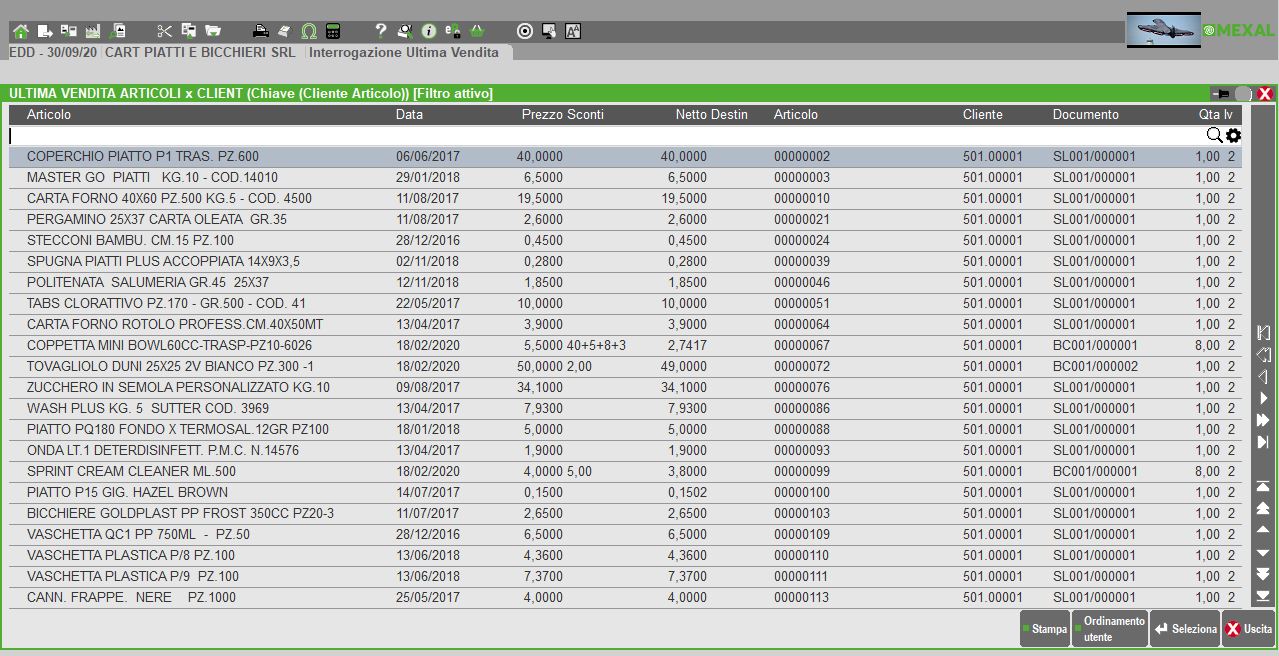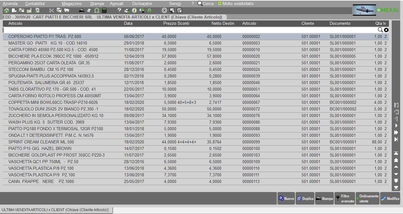 sconti dell’ultima vendita del cliente o acquisto del fornitore.