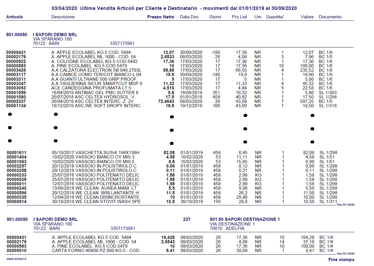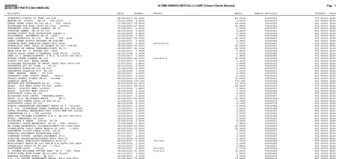 l’ultimo prezzo e sconto applicato di uno o piu’ articoli.