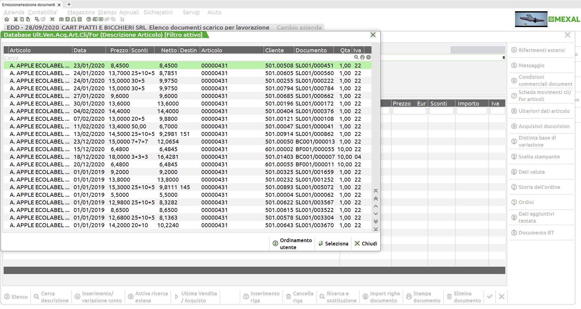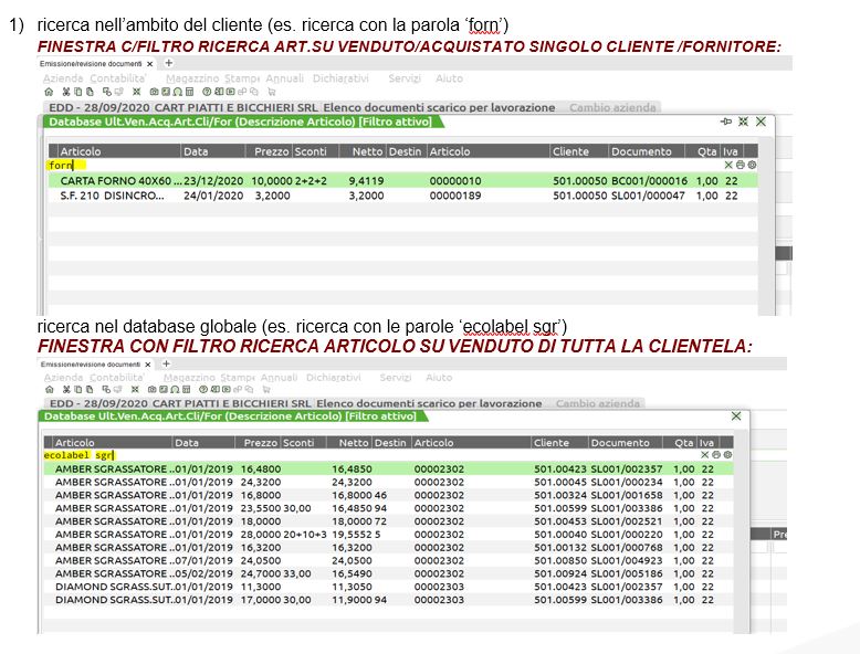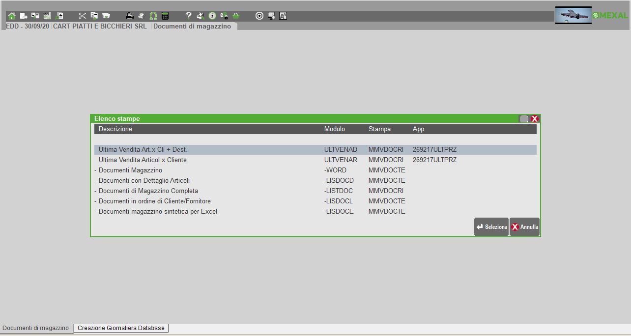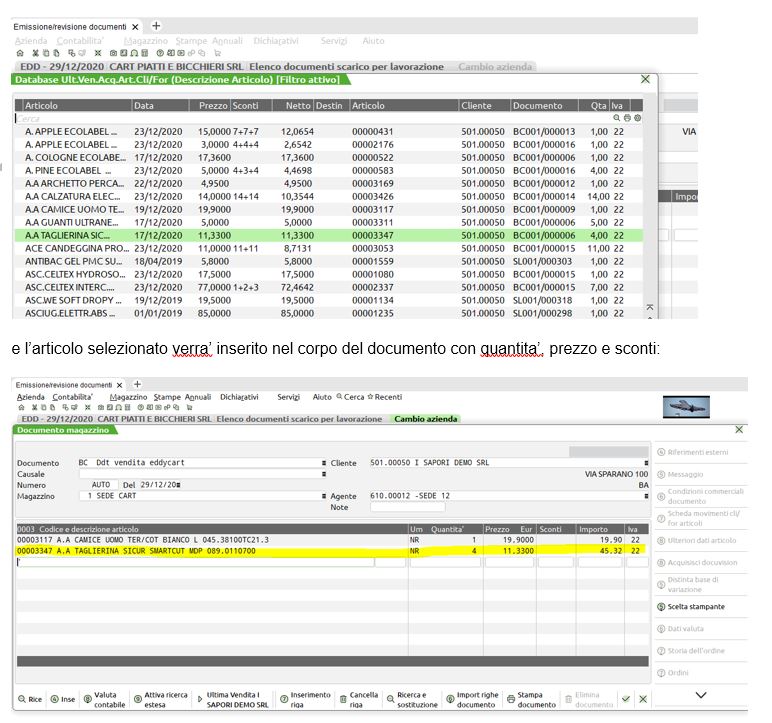 Emissione Revisione Documenti, riportando l’ultimo prezzo ‘pagato’ e relativi