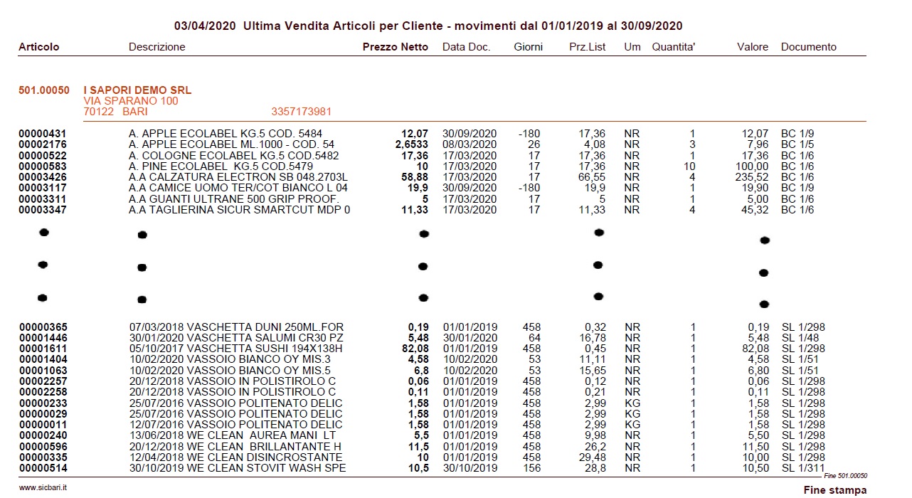 cliente o l’acquistato dal fornitore con i SOLI ULTIMI ARTICOLI e l’ULTIMO