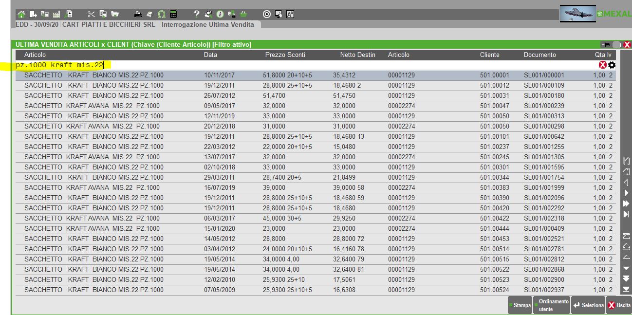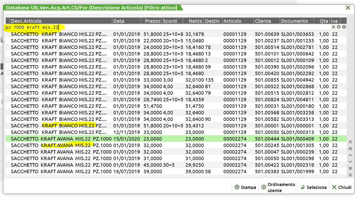 per ottenere l'ULTIMO PREZZO PAGATO.