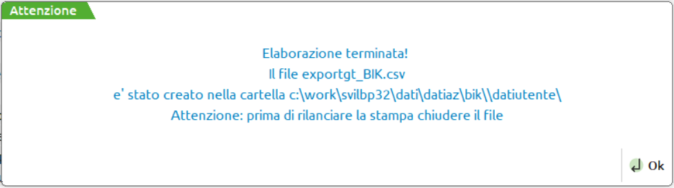 L’Applicazione esegue stampa e creazione di un file .csv con articoli a taglie con quantità carico, e scarico per taglia.