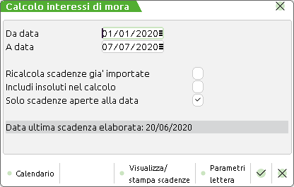 Il calcolo prevede la possibilità di considerare anche le scadenze chiuse ma con ritardati pagamenti e gli insoluti pervenuti successivamente alla data di scadenza.