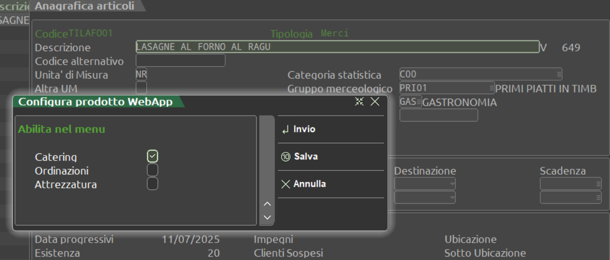 Permette di precaricare Eventi di catering e momenti gestendo la loro creazione da mexal tramite articoli strutturati.