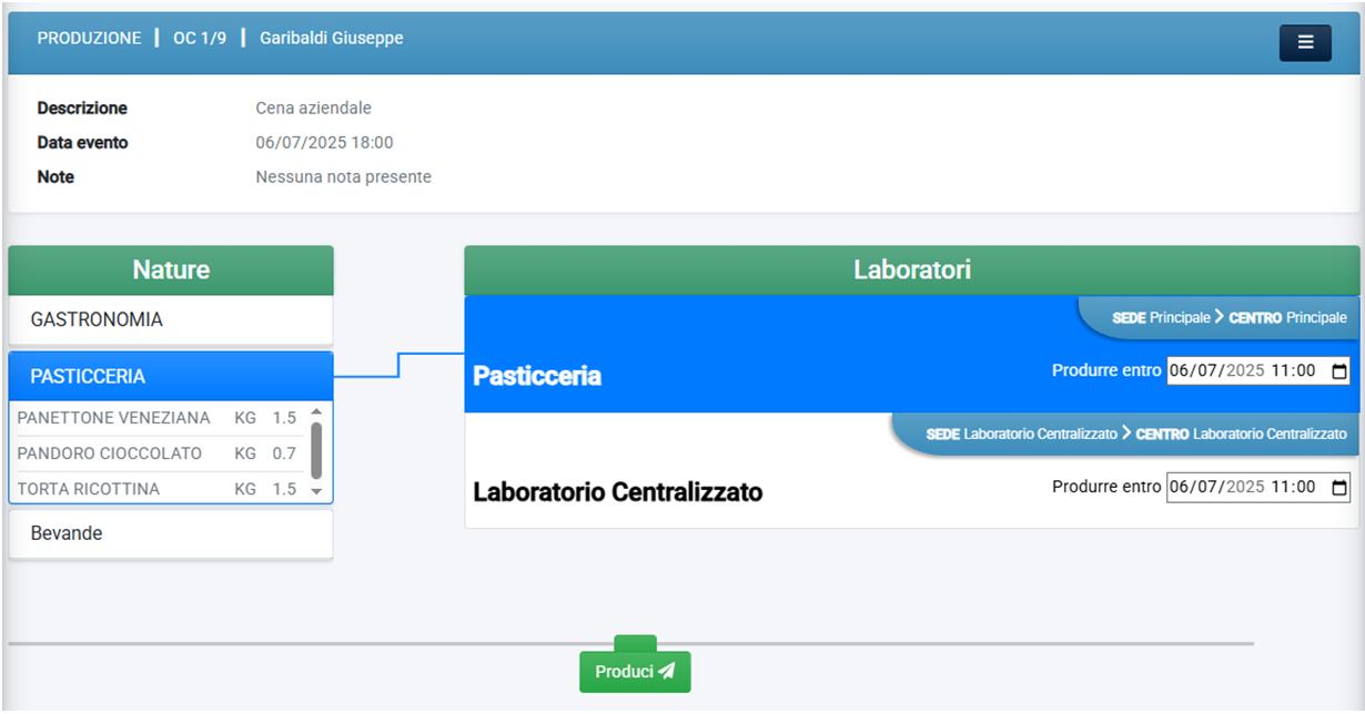 Gestisce invio in produzione delle comande ai laboratori di produzione per natura prodotto, generando un documento CL a fase unica.