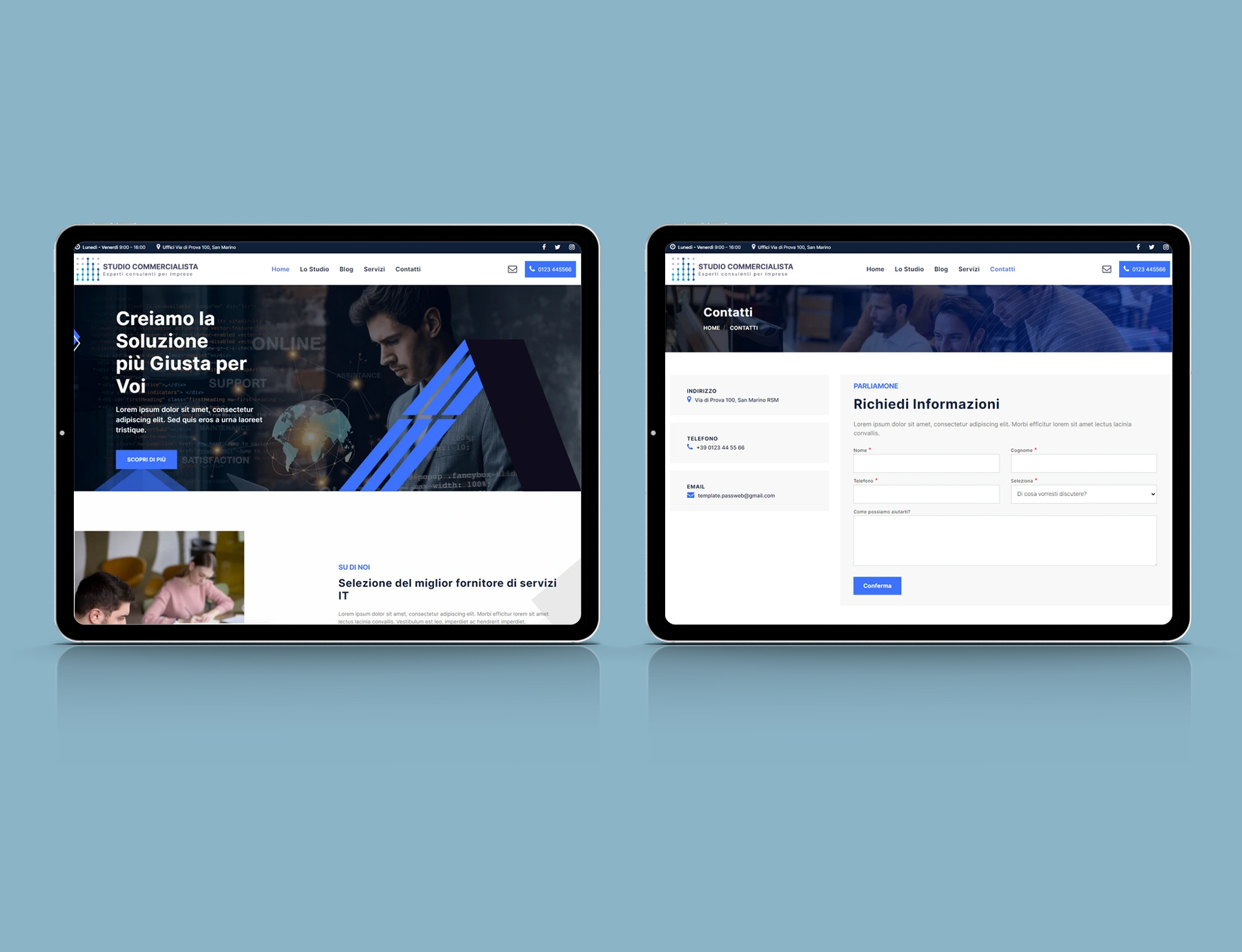 Studio Commercialista 2 è un template responsive per studi professionali che desiderano avere un’immagine online professionale. La sua struttura permette di dare risalto alle informazioni principali sullo studio.