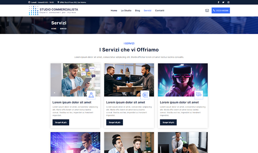 - Struttura multipagina con sezioni dedicate a servizi, chi siamo, team, contatti e blog per una comunicazione chiara e organizzata.