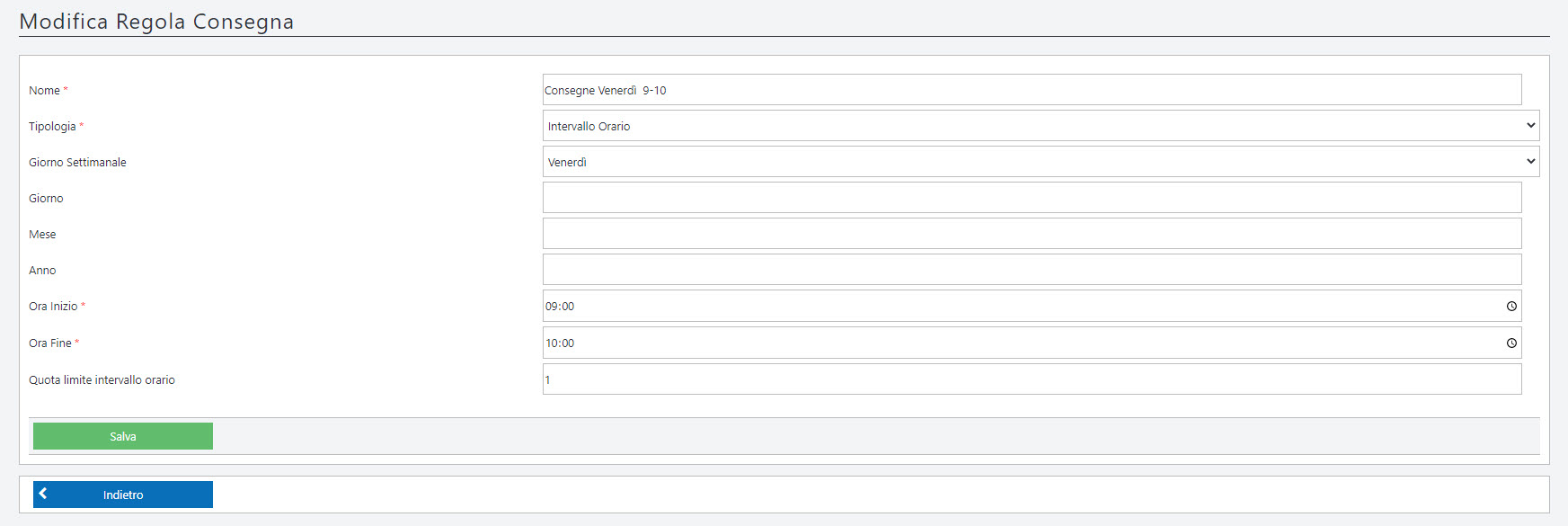 Impostazione delle regole che definiscono giorni e intervalli orari delle consegne