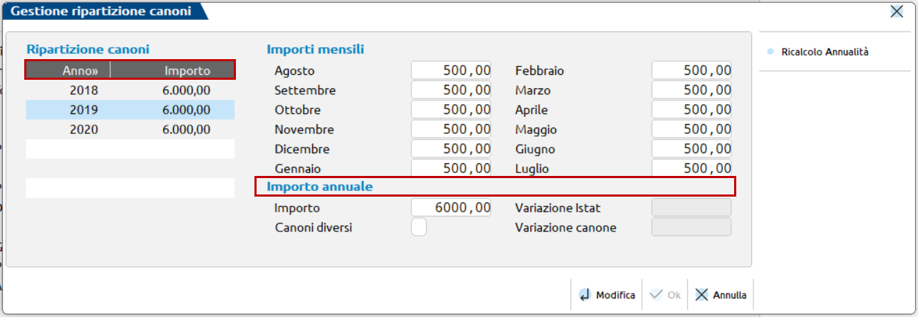 1.2.7 - Modifica gestione canoni differenti per una o più annualità. Fix calcolo data decorrenza proroga per i contratti in essere