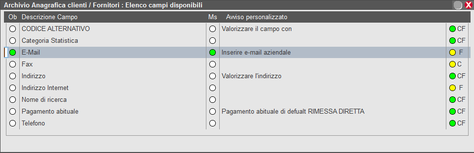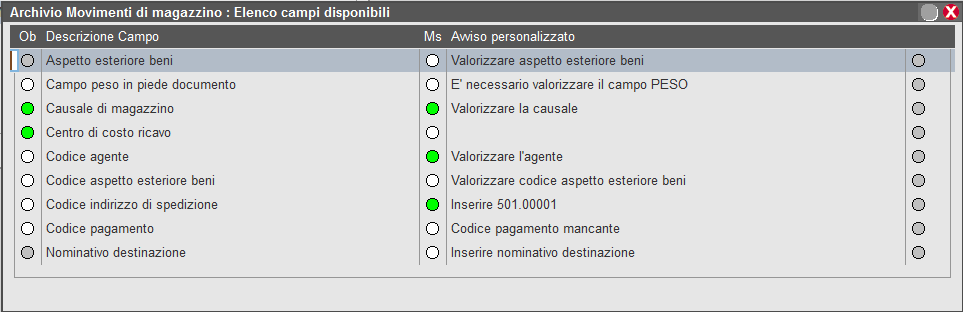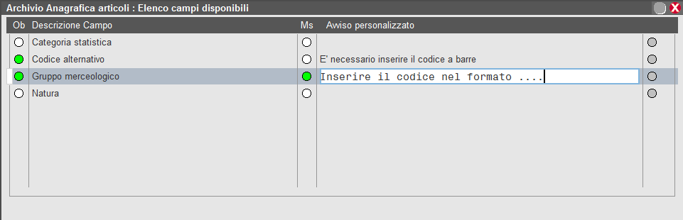 Procedura che permette di attivare la validazione obbligatoria, o un'avviso a video per alcuni campi del gestionale Mexal
