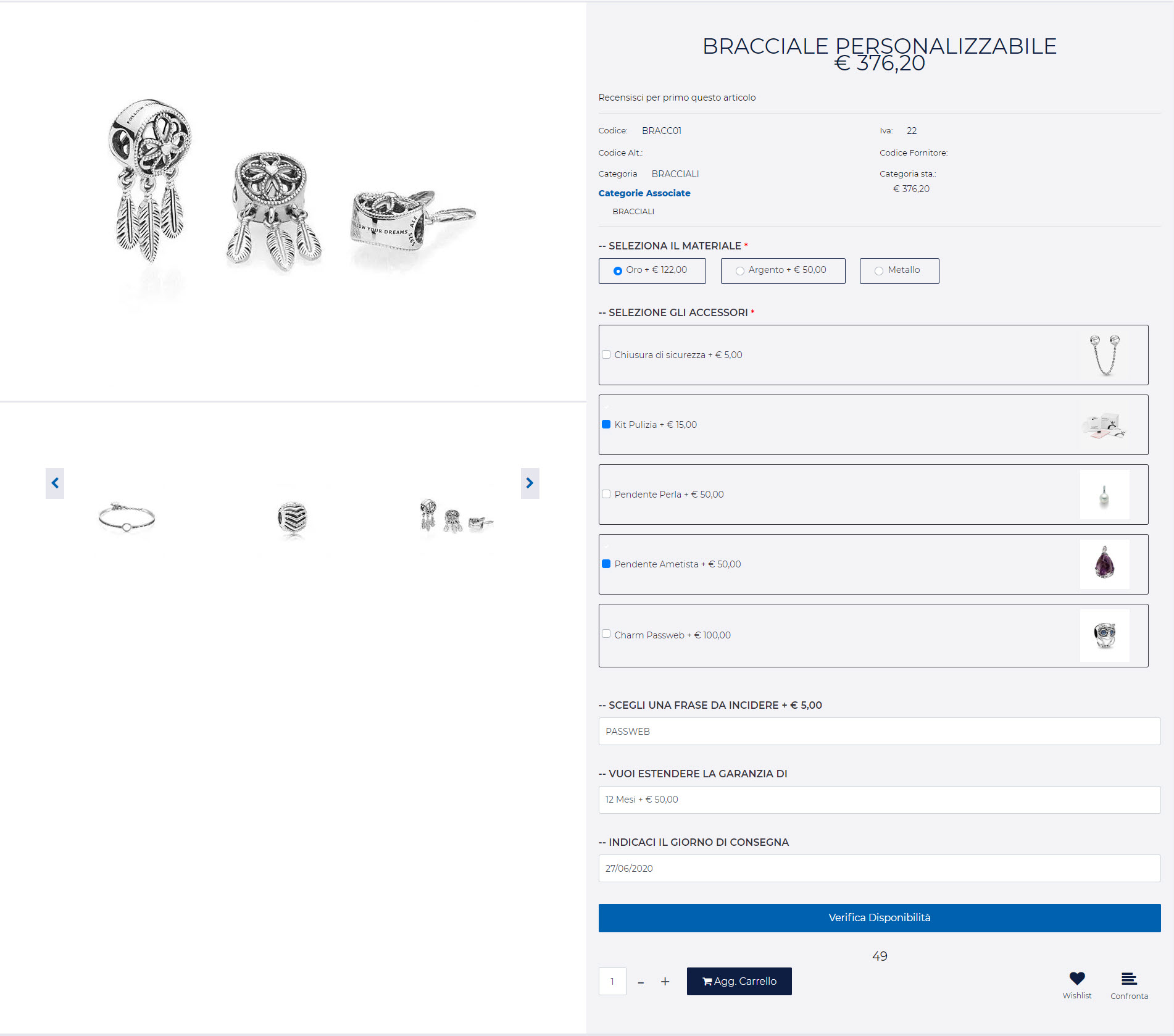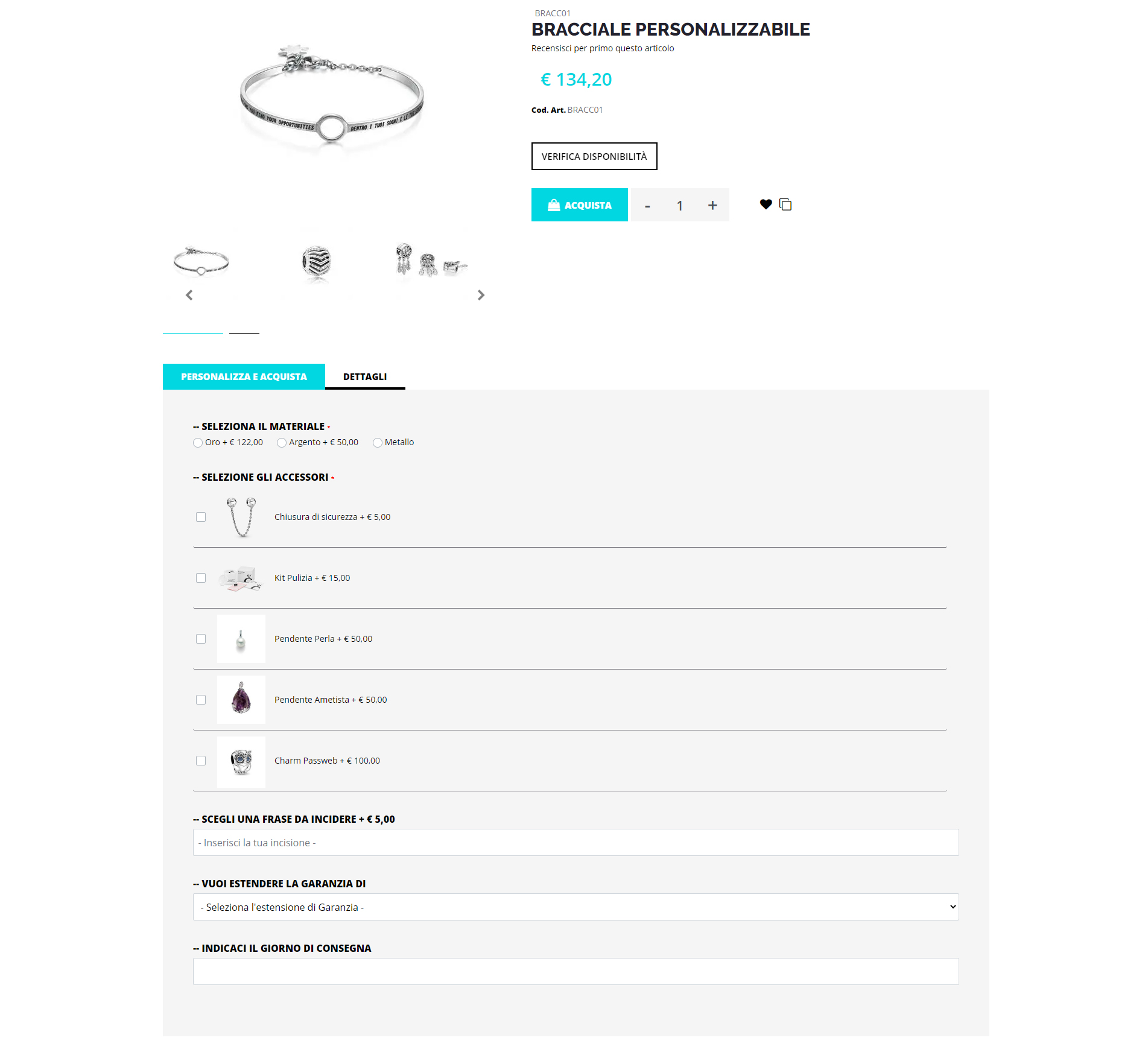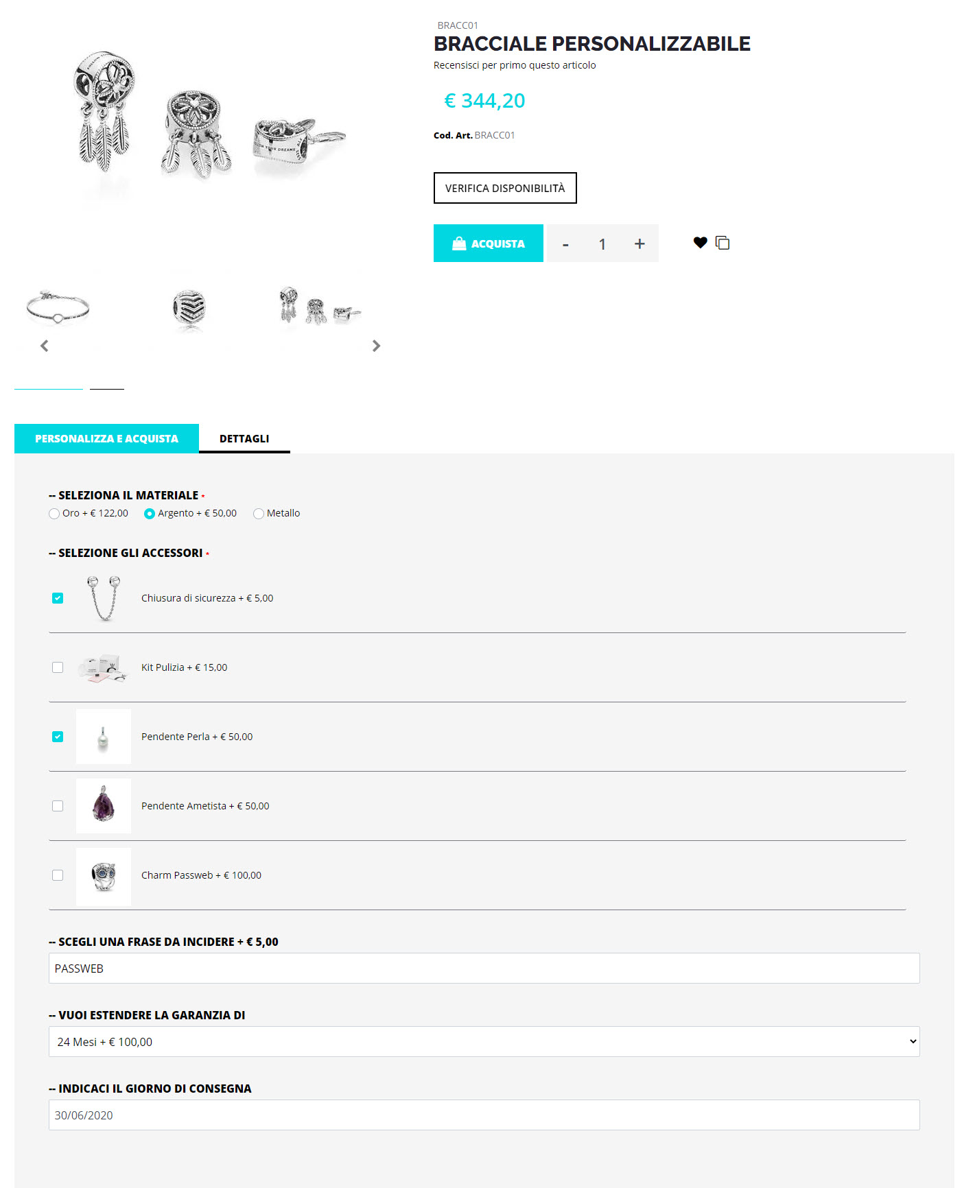 Prezzo articolo determinato in base alle personalizzazioni effettuate
