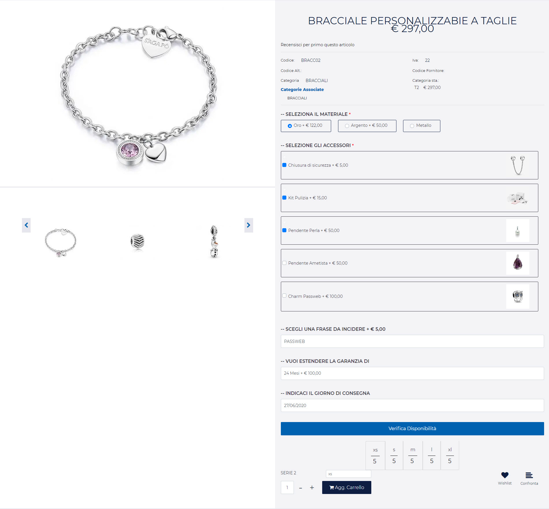 Attivabile su articoli semplici, a taglie, strutturati, campionari