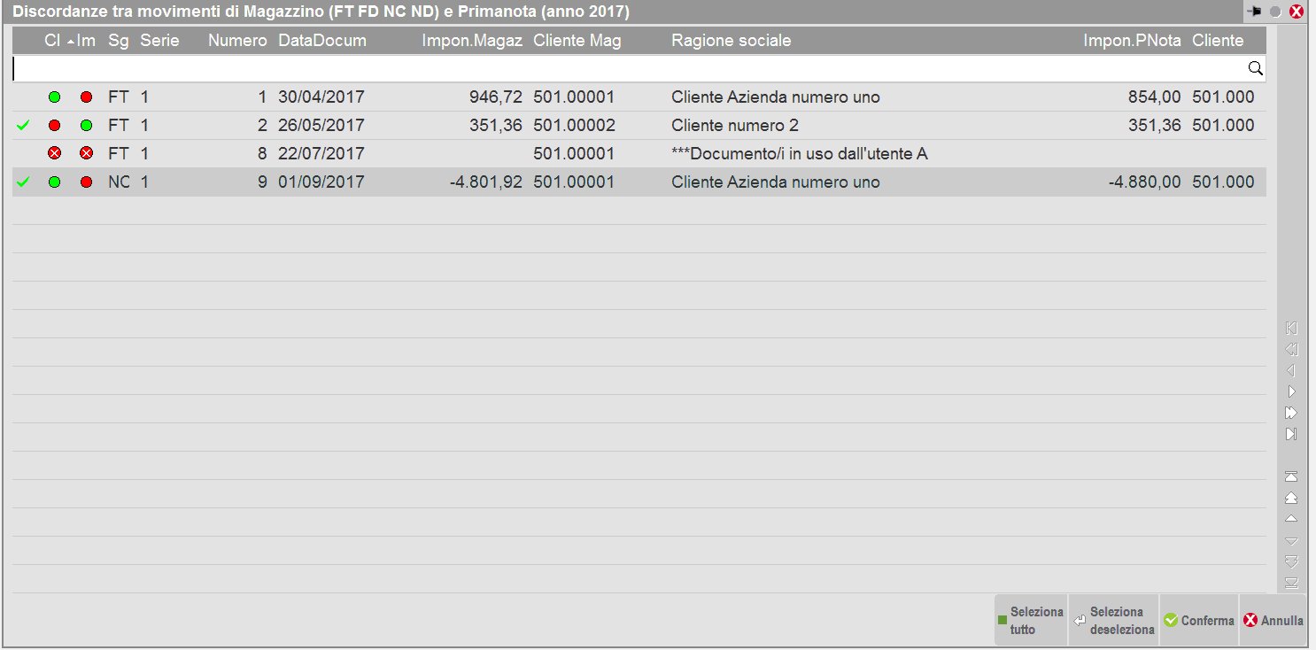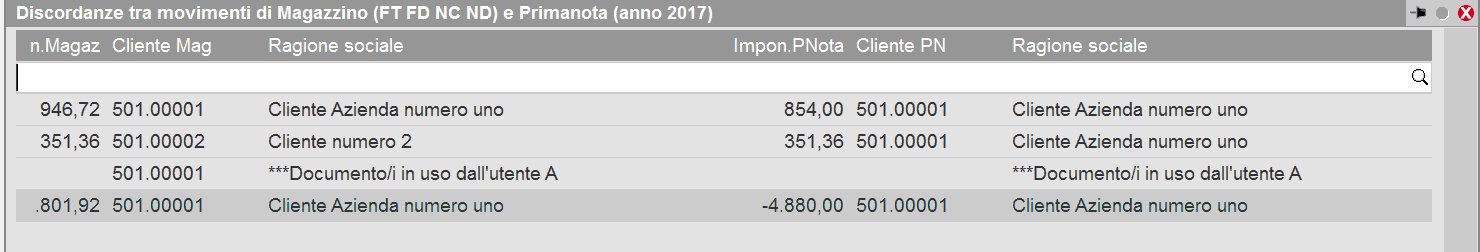 tra i movimenti di magazzino (sigle documenti FT FD NC ND) e le corrispondenti registrazioni