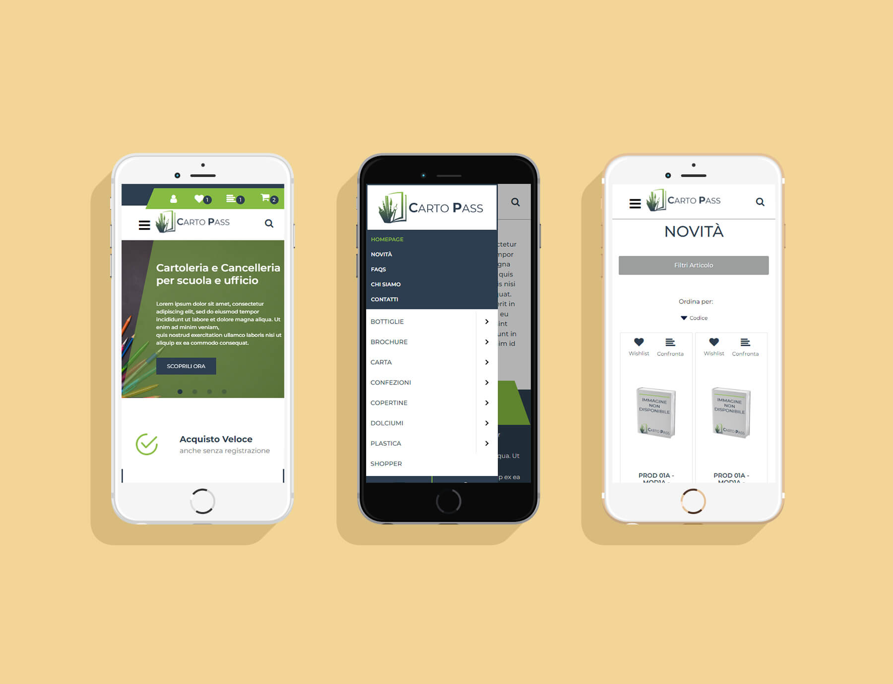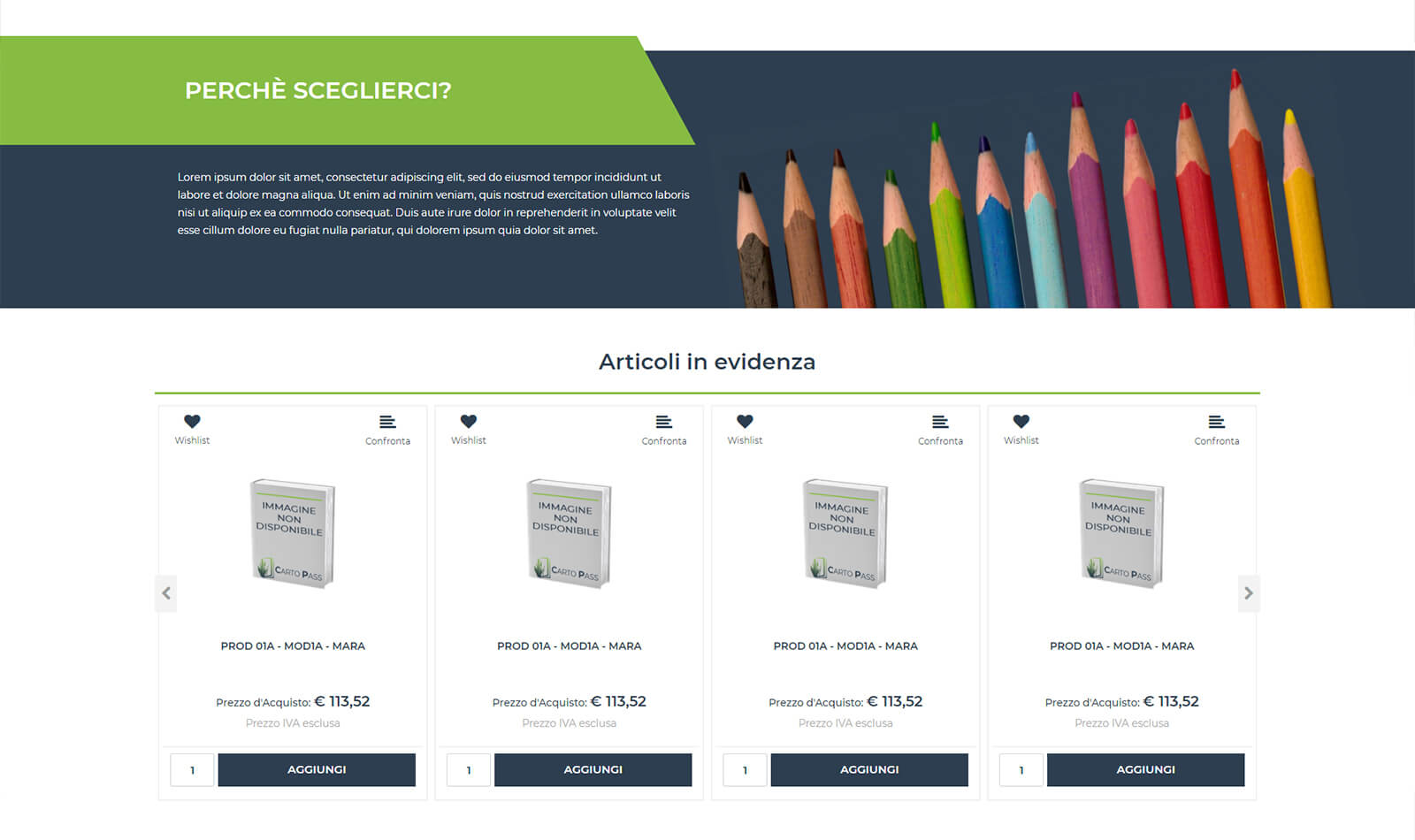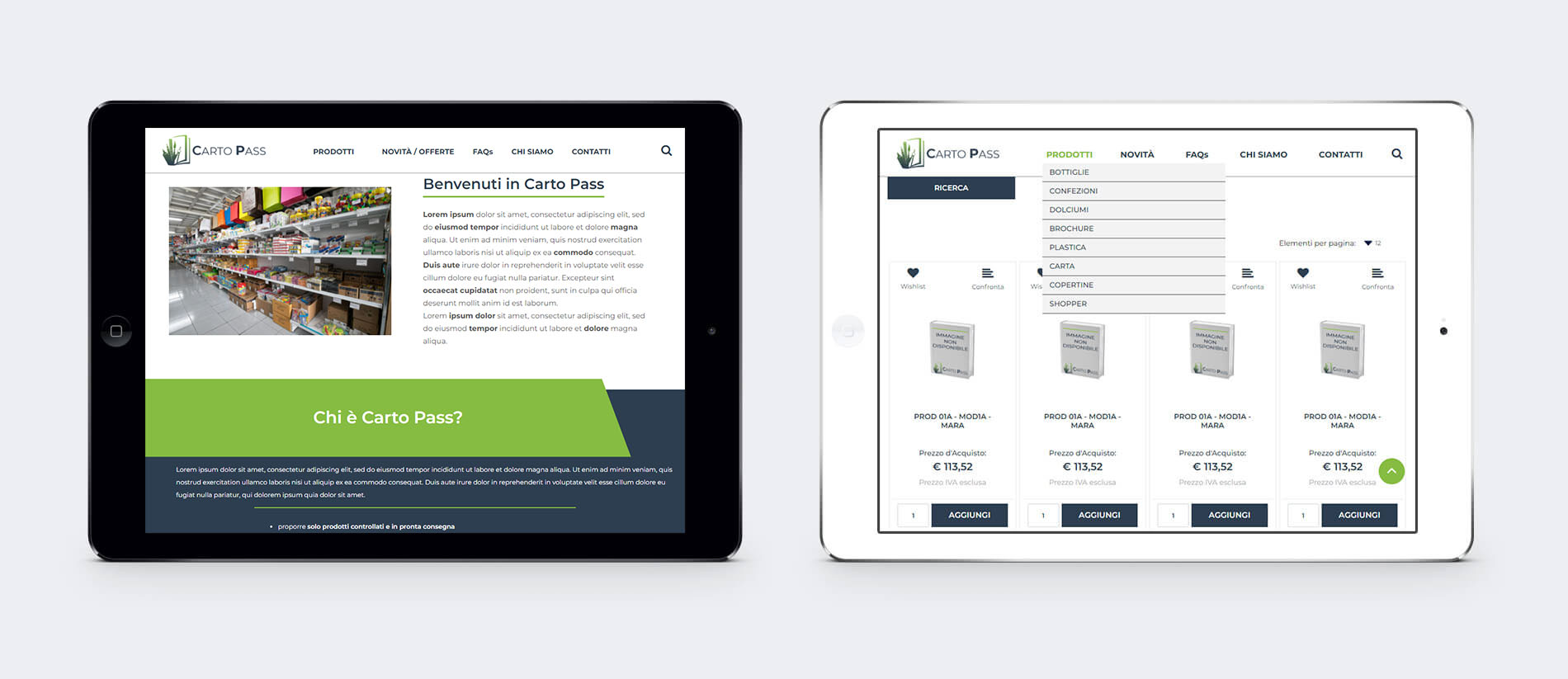 CartoPass, con il nuovissimo restyling, oltre a porsi come un'ottimo e-commerce per la tua attività, ti permette di gestire tutti i contenuti come slider in homepage, sezione novità, one step checkout in modo semplice ed intuitivo.