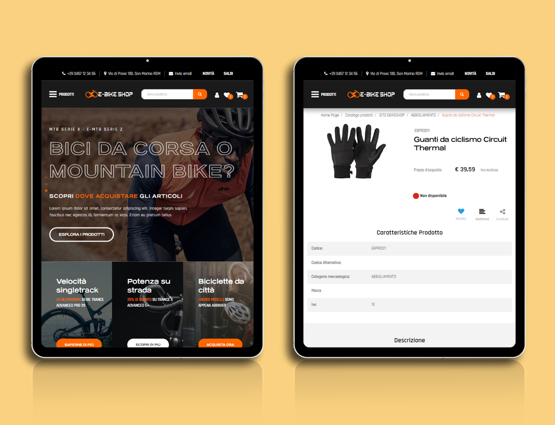 E-Bike shop ha un layout adatto per e-commerce di articoli sportivi o comunque abbigliamento, ma può facilmente essere utilizzato per qualsiasi altro settore.