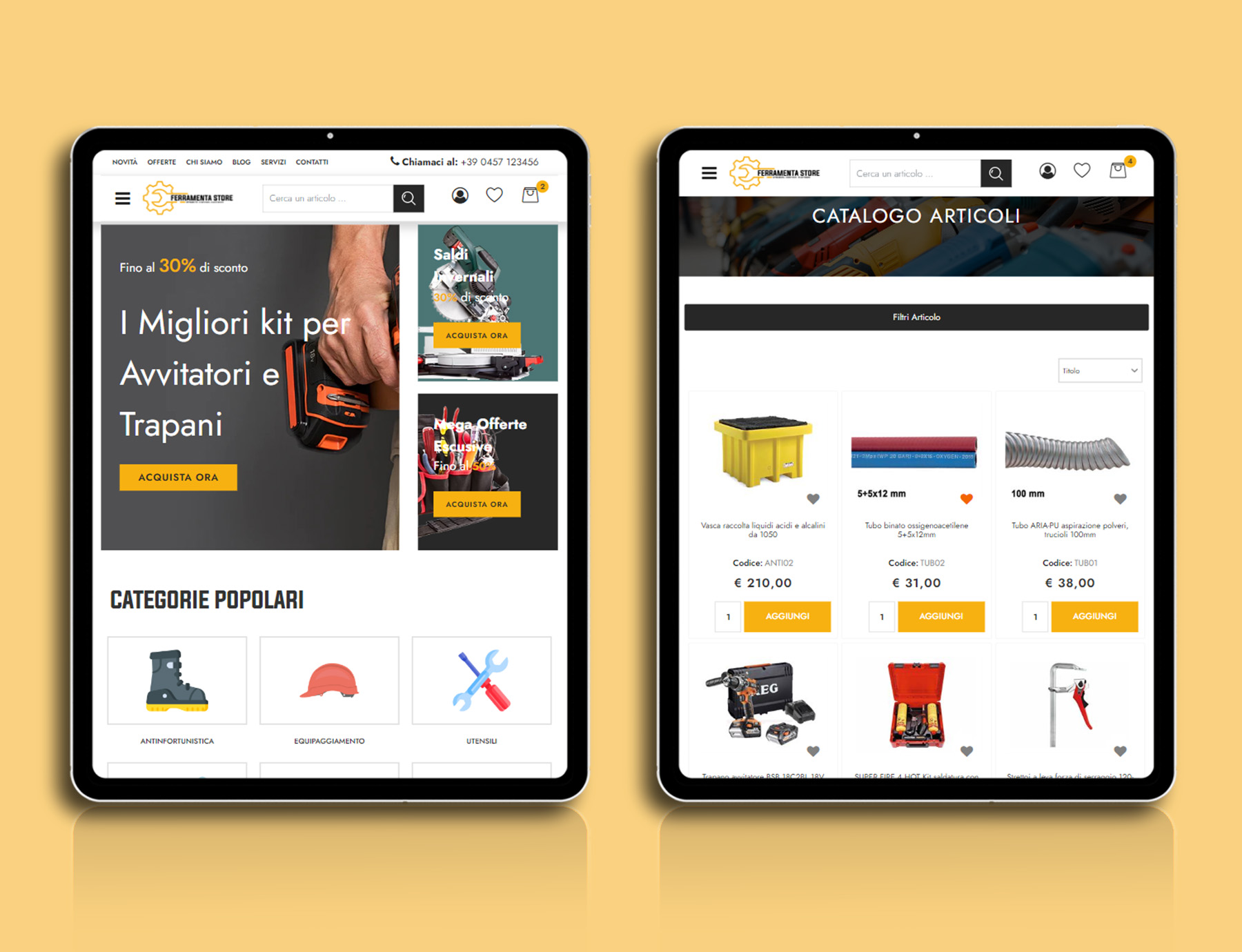 Ferramenta Store ha un layout responsivo pensato per e-commerce dei settori: ferramenta, articoli da giardinaggio, articoli tecnici industriali; ed in genere per gli shop online che devono presentare al pubblico un catalogo articoli molto ampio e variegato, con un numero elevato di prodotti ed altrettante categorie merceologiche associate.