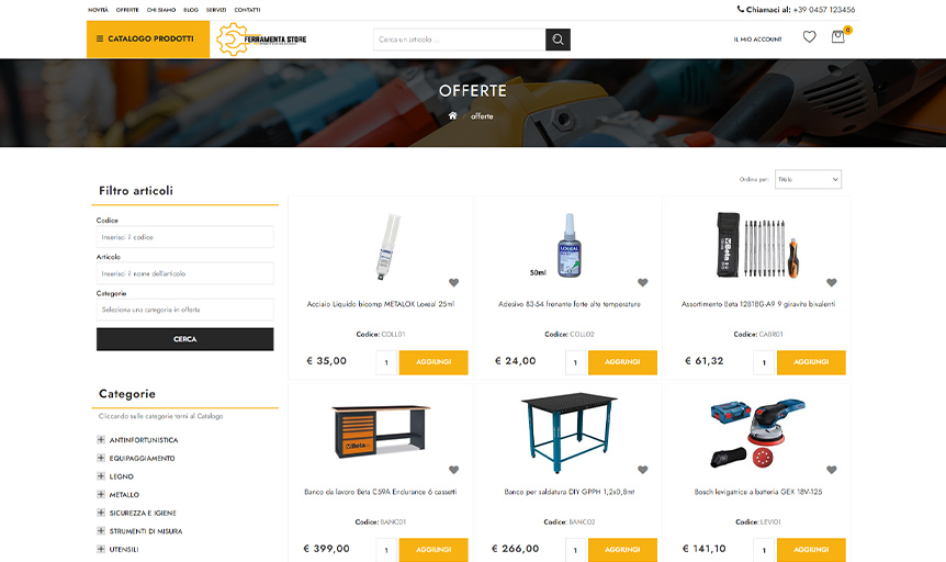 Ferramenta Store è inoltre predisposto per ospitare, in pagina catalogo, un set di filtri adatto a siti con una moltitudine importante di articoli.