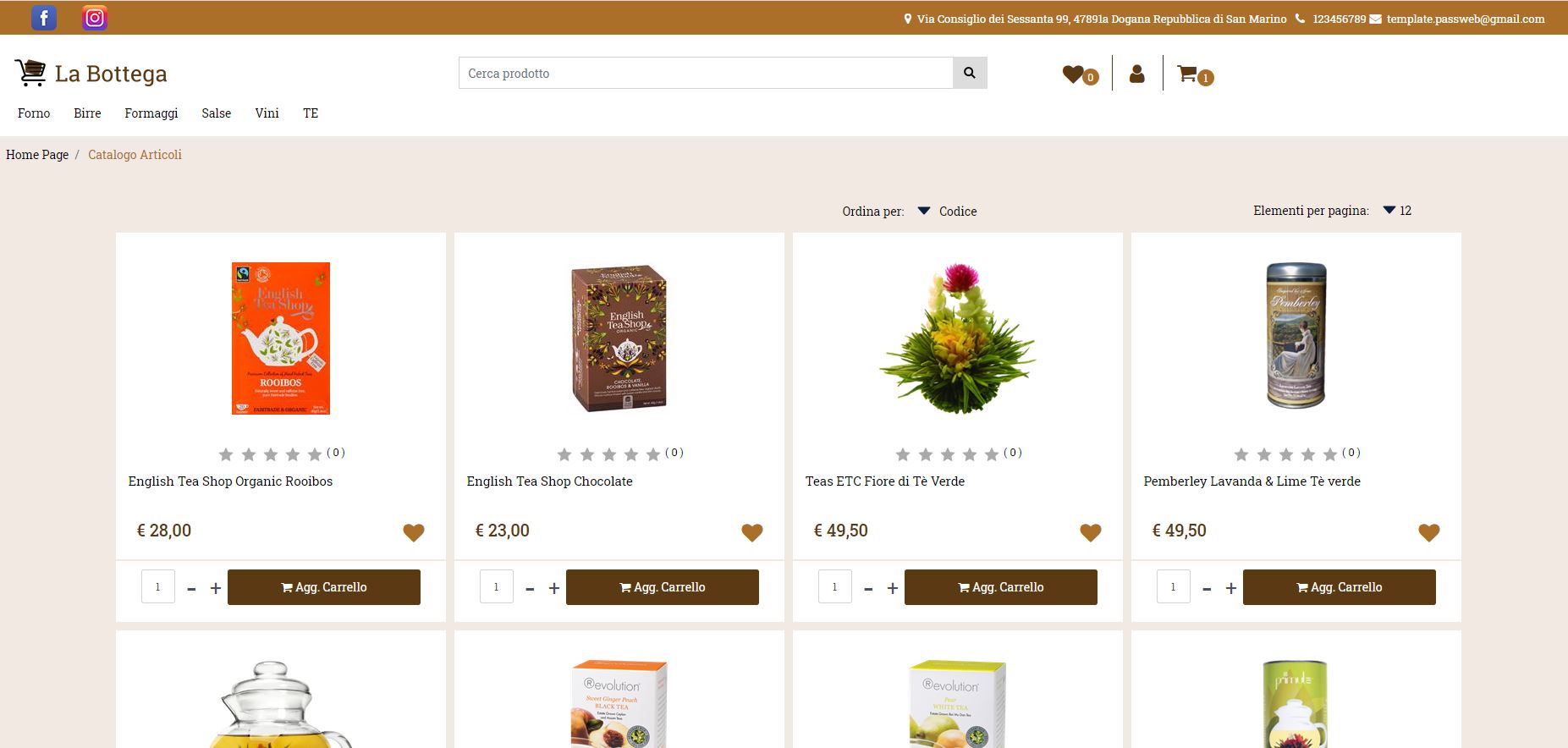 Layout responsivo pensato per e-commerce creati con Passweb. Studiato per adattarsi a soluzioni e-commerce semplici, gode di una grafica adatta ad ogni dispositivo, leggera e fruibile da mobile.