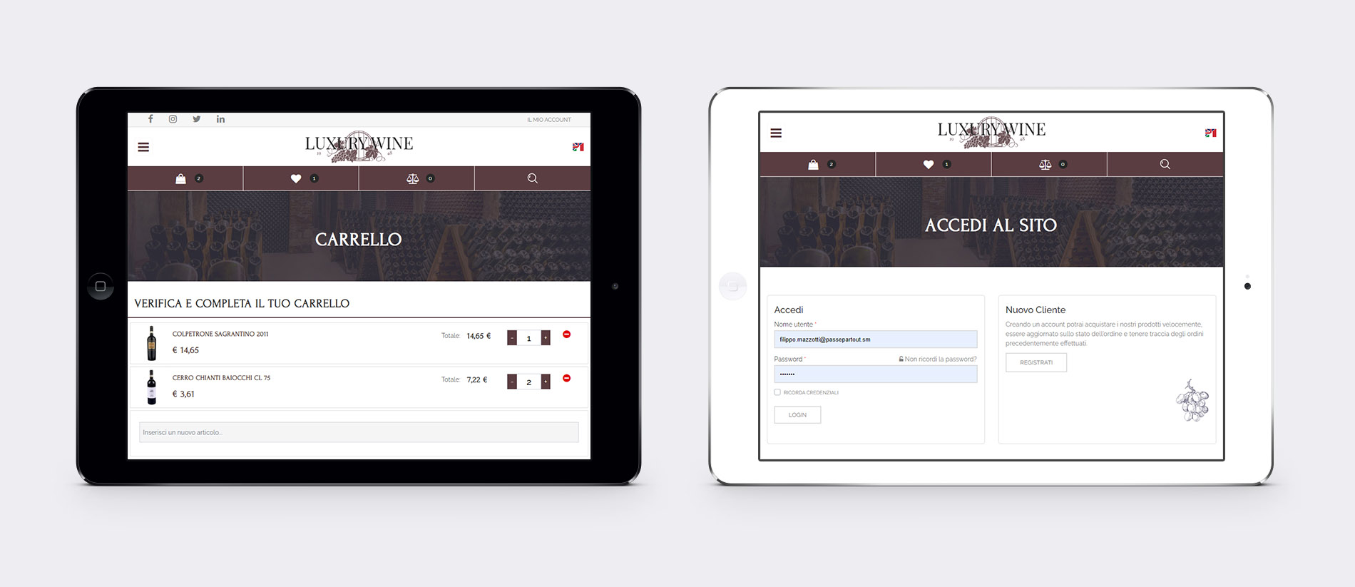 Luxury Wine, layout responsivo pensato per gli e-commerce creati con Passweb.