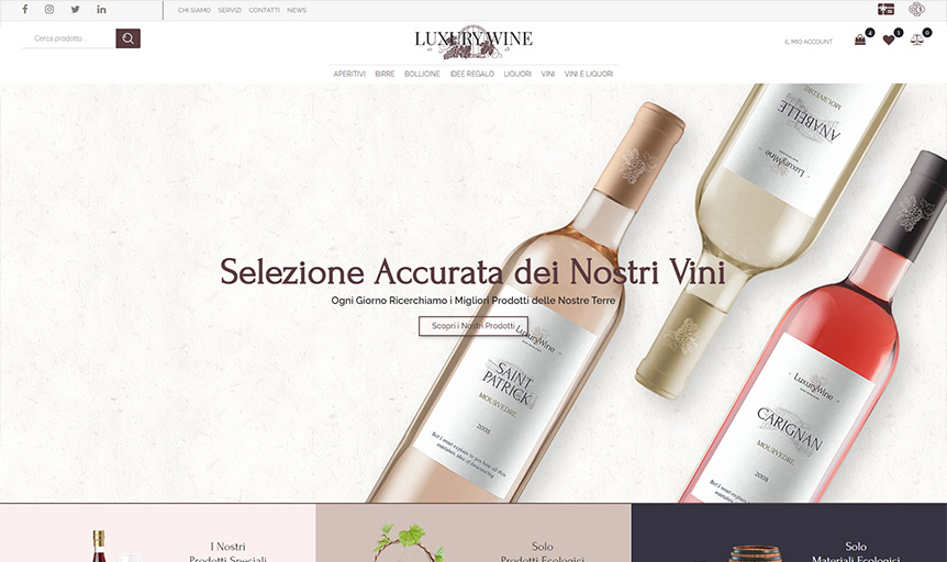 Luxury Wine è un template pensato per il settore beverage adattabile a qualsiasi tipologia di sito e-commerce (b2b e b2c) e dotato di tante funzionalità!