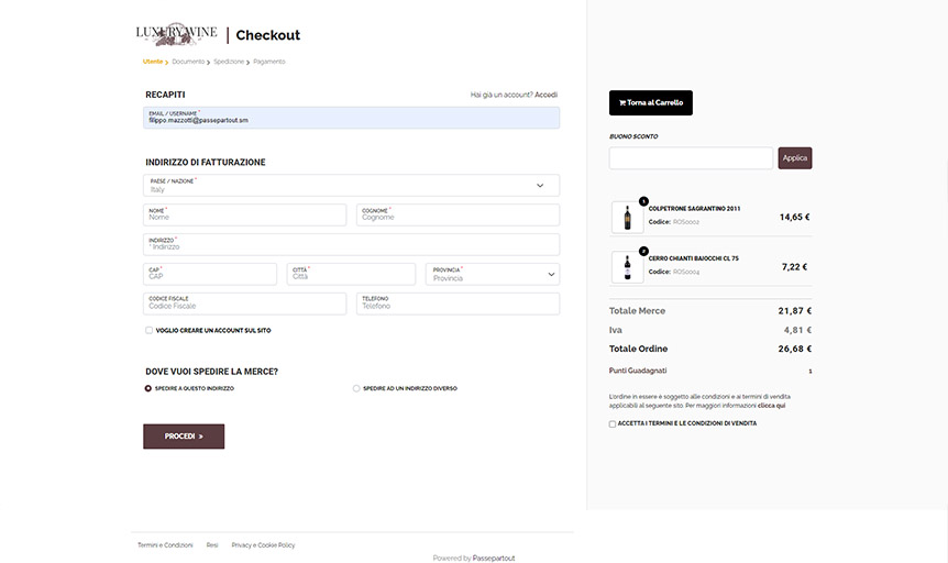 - Checkout ordine a step orizzontali per facilitare il processo di conferma ordine