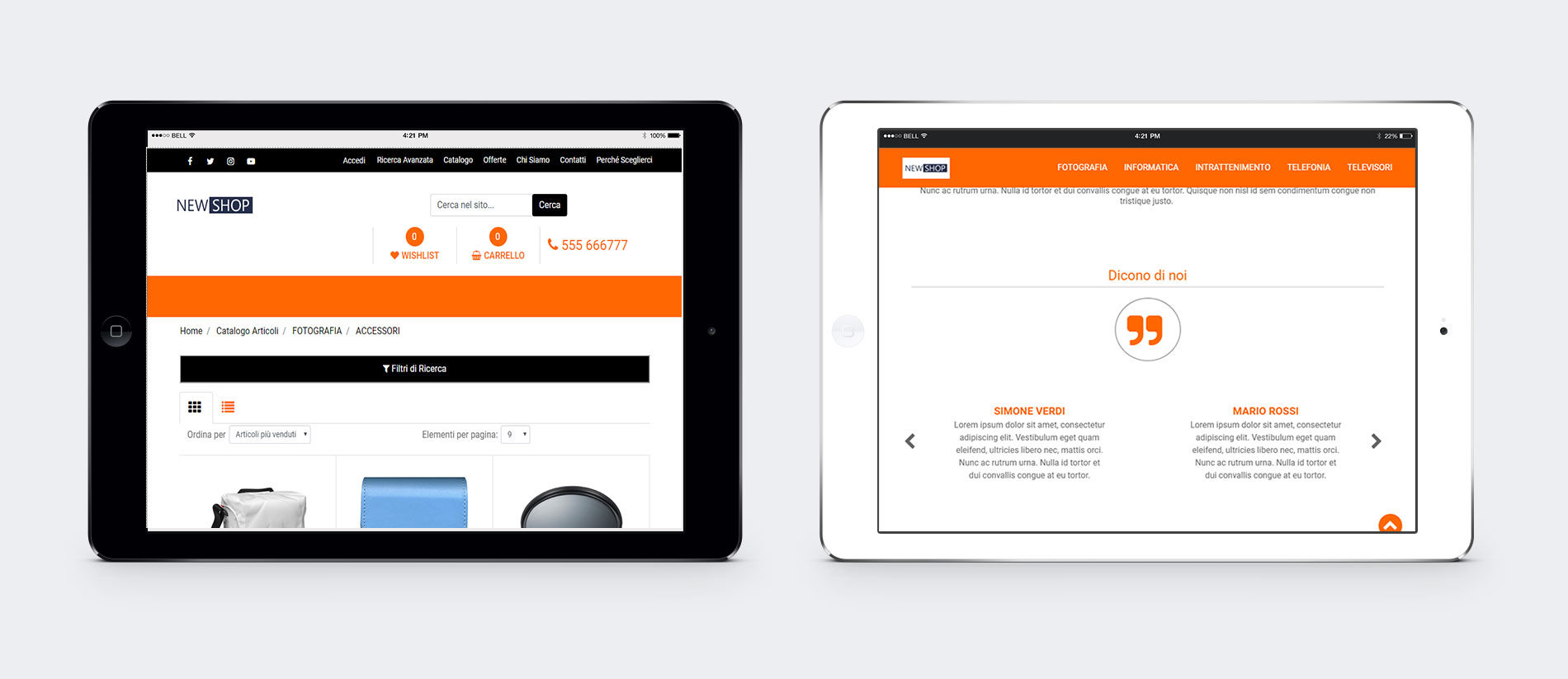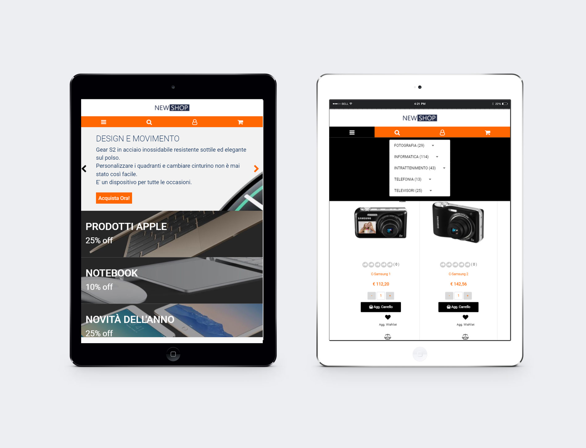 Ha un layout di tipo responsive a tutto schermo, molto moderno e funzionale. In hoime page viene dato molto spazio alle immagini e per questo risulta più adatto ad aziende che hanno regolarmente disponibilità di immagini di qualità. News Shop ha un menù ricco di componenti e quindi idale per chi ha un catalogo articoli molto corposo o comunque un sito ricco di contenuti.