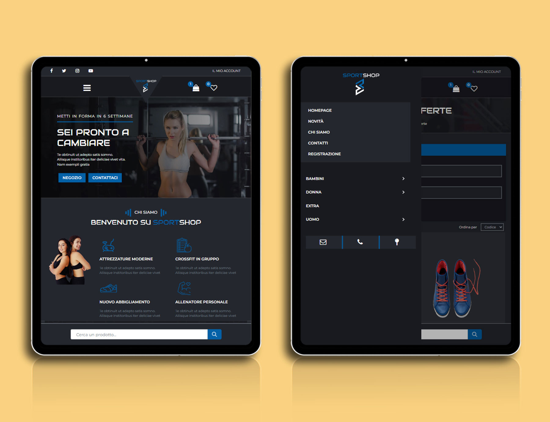 Studiato per adattarsi ad ogni tipologia di e-commerce, SPORT SHOP gode di una grafica innovativa e dettagliata. Il carrello e la wishlist presentano una grafica semplice e moderna su desktop, più ottimizzata e compatta da mobile.