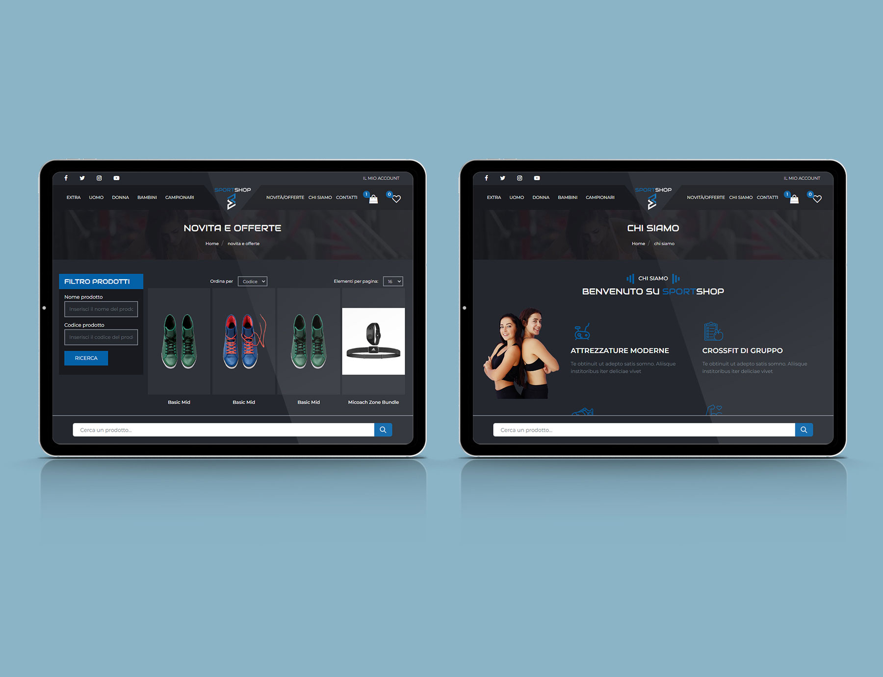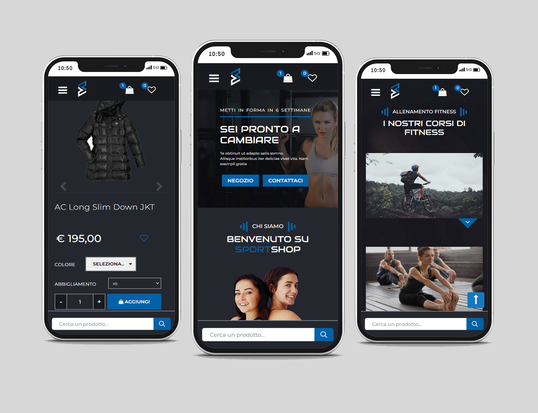 SPORT SHOP ha layout responsivo pensato per gli e-commerce creati con Passweb.