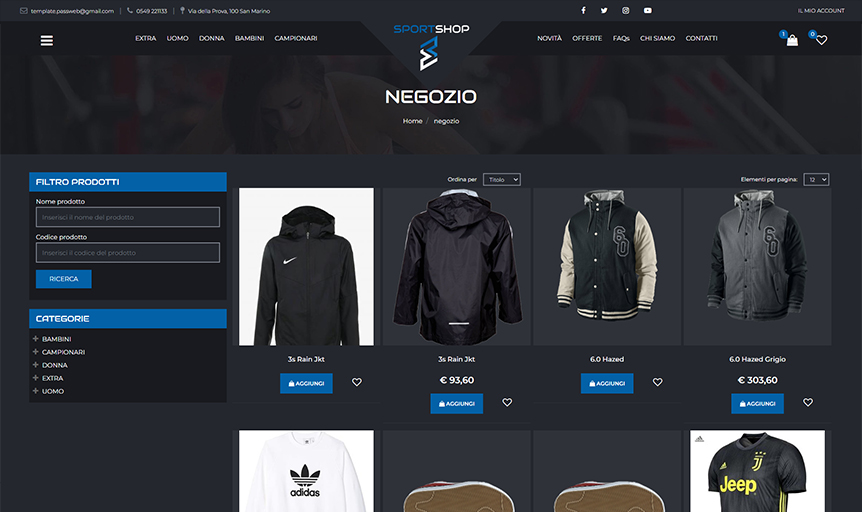 SPORT SHOP è un template di ultima generazione pensato per e-commerce del settore articoli sportivi, ma adattabile a qualsiasi tipologia di sito e-commerce e dispone di tantissime utili funzioni, come il nuovissimo checkout.