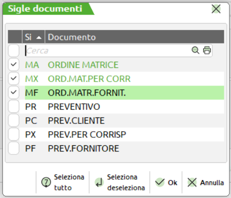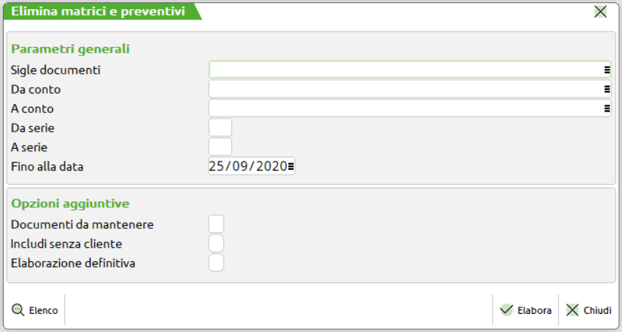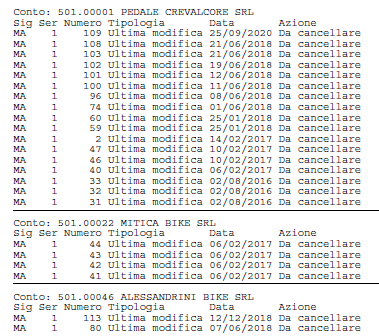 esegue la cancellazione dei documenti di tipo matrice (come “MA”, “MF”,”MX”) e