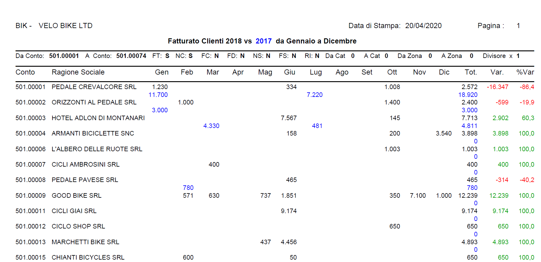 Sono previsti anche filtri per Zona e per Categoria Statistica Clienti.