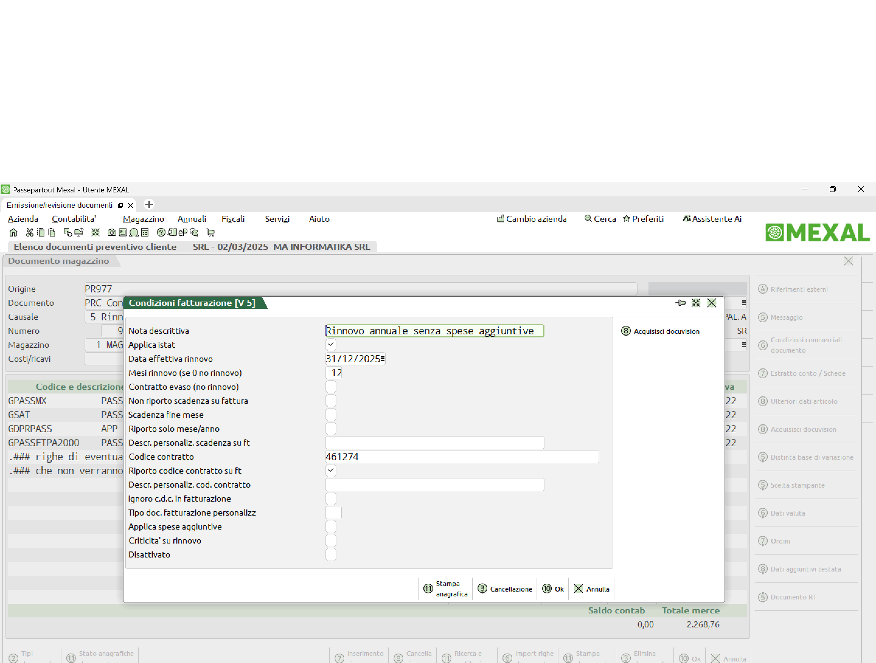 ovviamente non intaccano in alcun modo i dati e progressivi di magazzino: sia il contenuto del documento PR che del documento OC quindi può riguardare più articoli ed anche descrizioni aggiuntive e private non riportate in fattura; nel caso specifico di OC l' app in automatico toglie le voci non ricorsive e genera il contratto PR con la data di scadenza impostata. In automatico dunque emette le fatture aggiornando date ed importi del PR secondo un indice di rivalutazione ISTAT opzionale. Ideale per