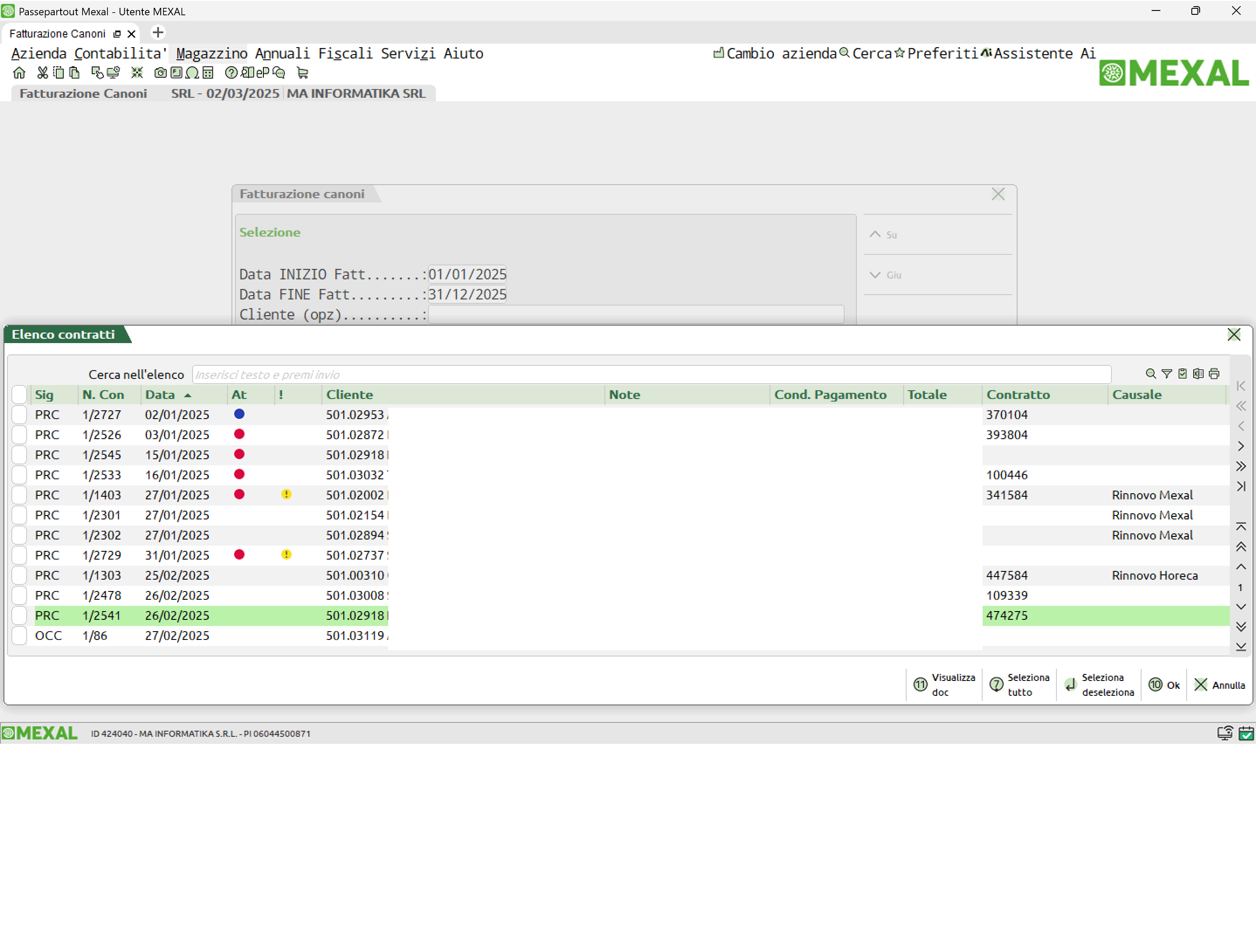 canone e/o contratto, potendo ampiamente parametrizzare gli intervalli di rifatturazione (mensili, bimestrali, trimestrali annuali e cosi via). Lavora sui documenti di tipo PR ed OC che