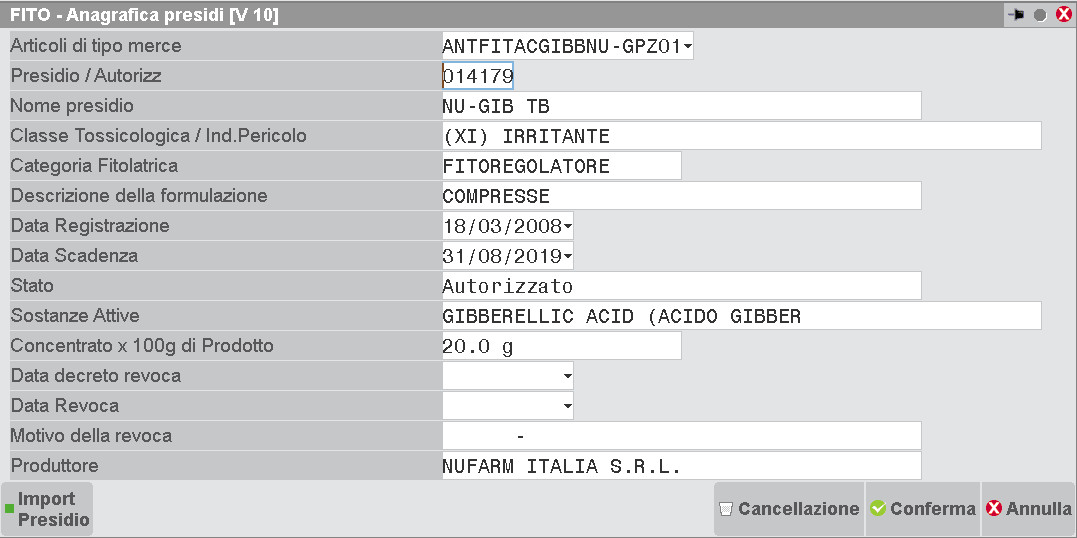 (v 1.9.0 ) A seguito della modifica del tracciato presidi del portale SIAN, è stato modificato il programma di import presidi da FITOMEX.