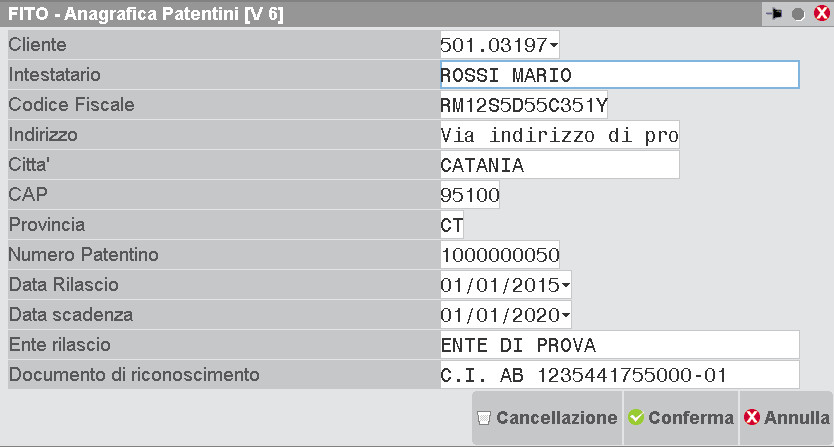 ( v 1.5.2 ) Aumentata la grandezza del campo "NUMERO PATENTINO" a 12 caratteri.