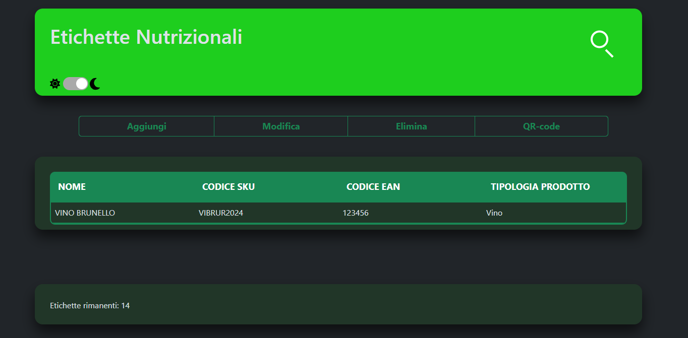 La procedura gestisce l’emissione delle etichette nutrizionali con l’applicazione delle normative del Regolamento (UE) 2021/2017 entrato in vigore l’8 Marzo 2024.