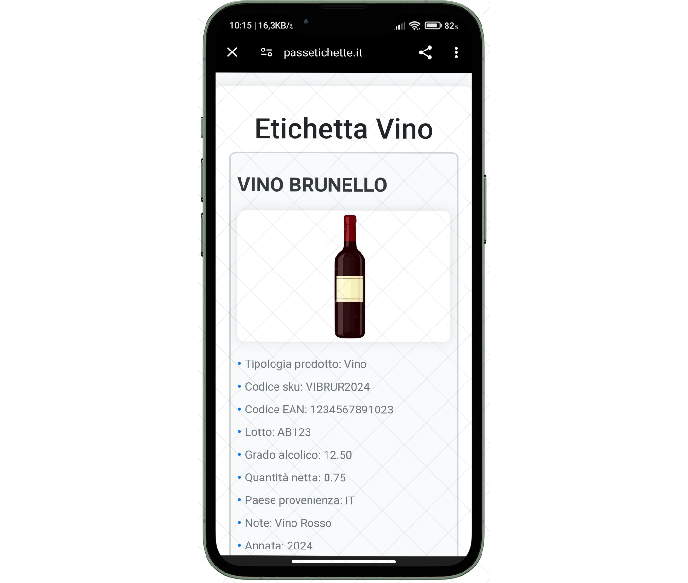Dichiarazione Nutrizionale: Le etichette devono includere una dichiarazione nutrizionale come definito dall’articolo 9, paragrafo 1, lettera l), del regolamento (UE) n. 1169/2011. I valori nutrizionali dovranno fornire informazioni relative al potere calorico dei vini oltre che grassi, zuccheri, carboidrati, sale e proteine.