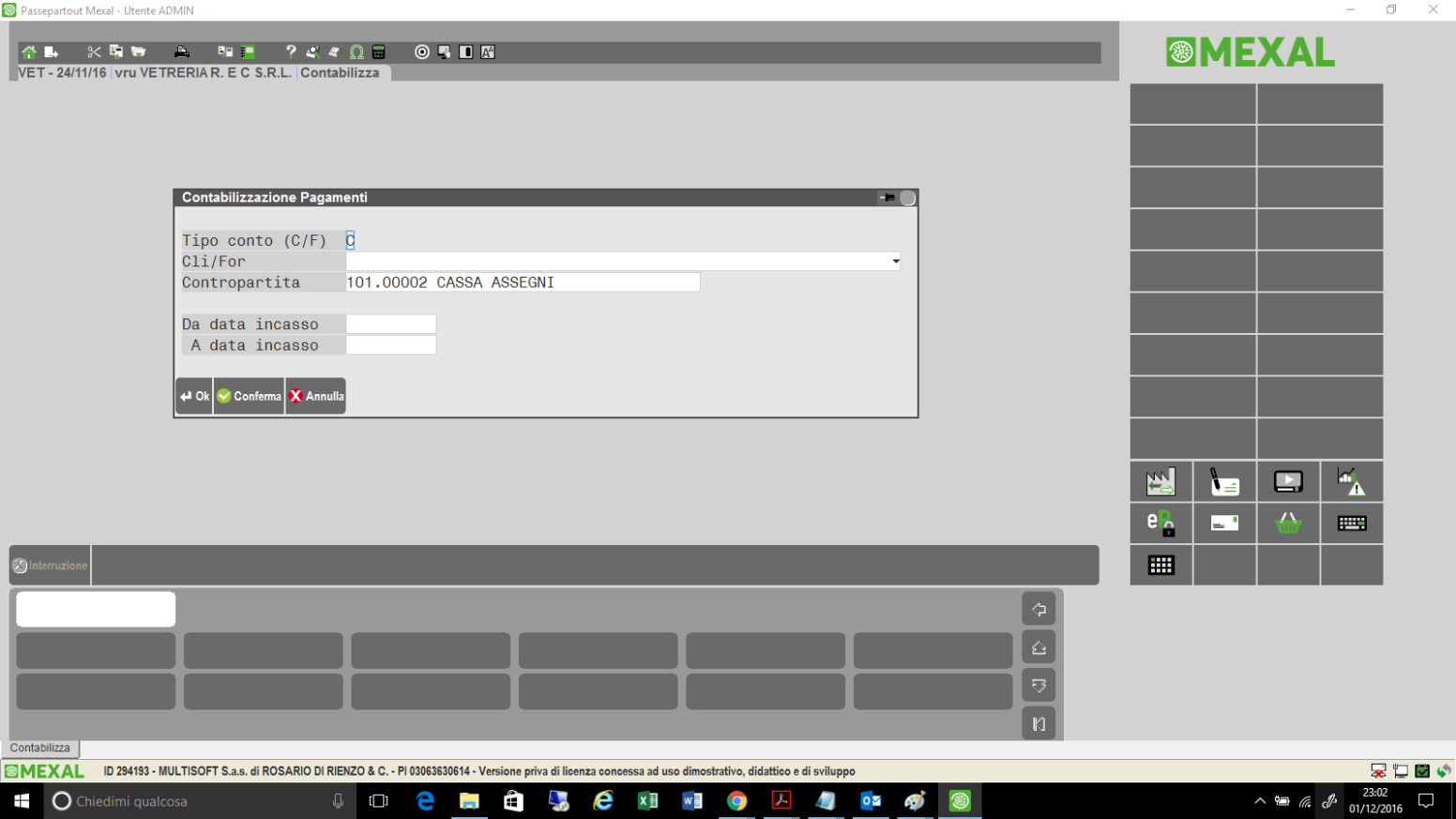 La procedura consente la gestione degli Assegni, ricevuti ed emessi. Ne segue la storia, abbinando le scadenze ad ogni assegno, ed eseguendo la contabilizzazione a richiesta dell’operatore.