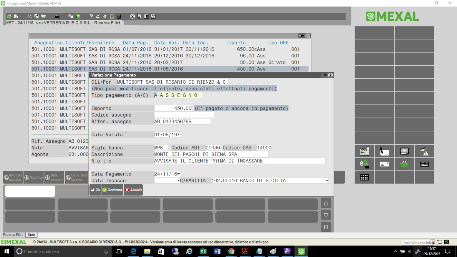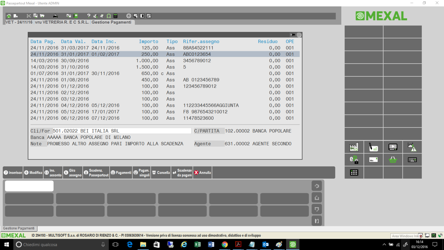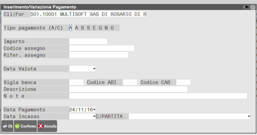 La procedura consente la gestione degli Assegni, sia ricevuti, sia emessi.