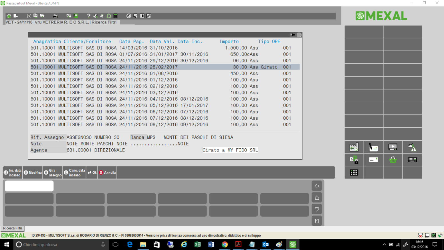 E' anche possibile "girare" in automatico ad un fornitore, un assegno ricevuto.
