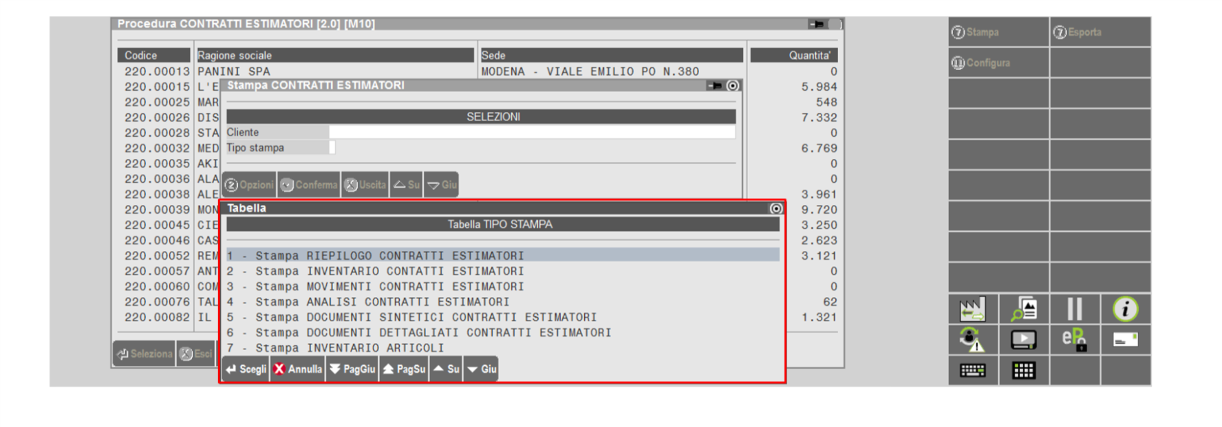 Gestione CONTRATTI ESTIMATORI si prefigge di gestire i contratti in conto vendita o conto visione.