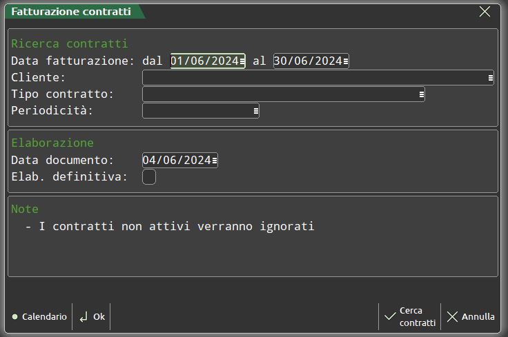 o La procedura esegue l’importazione, l’archiviazione di contratti (anche corredati da documenti collegati importabili in Docuvision) e la fatturazione dei canoni di contratti a scadenza periodica. Tramite l’applicazione è inoltre possibile tracciare la necessità di interventi manuali da parte di un operatore contestualmente al rinnovo, per esempio per l’immissione di un codice o l’installazione manuale di un componente.