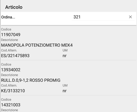l’evasione da OF e la ricerca degli articoli attraverso codice a barre.