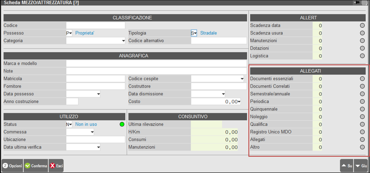 Gestione MEZZI E ATTREZZATURE consente di monitorare tutti gli adempimenti connessi con il possesso dei mezzi strumentali presenti in azienda nonché la rilevazione dell’utilizzo degli stessi.